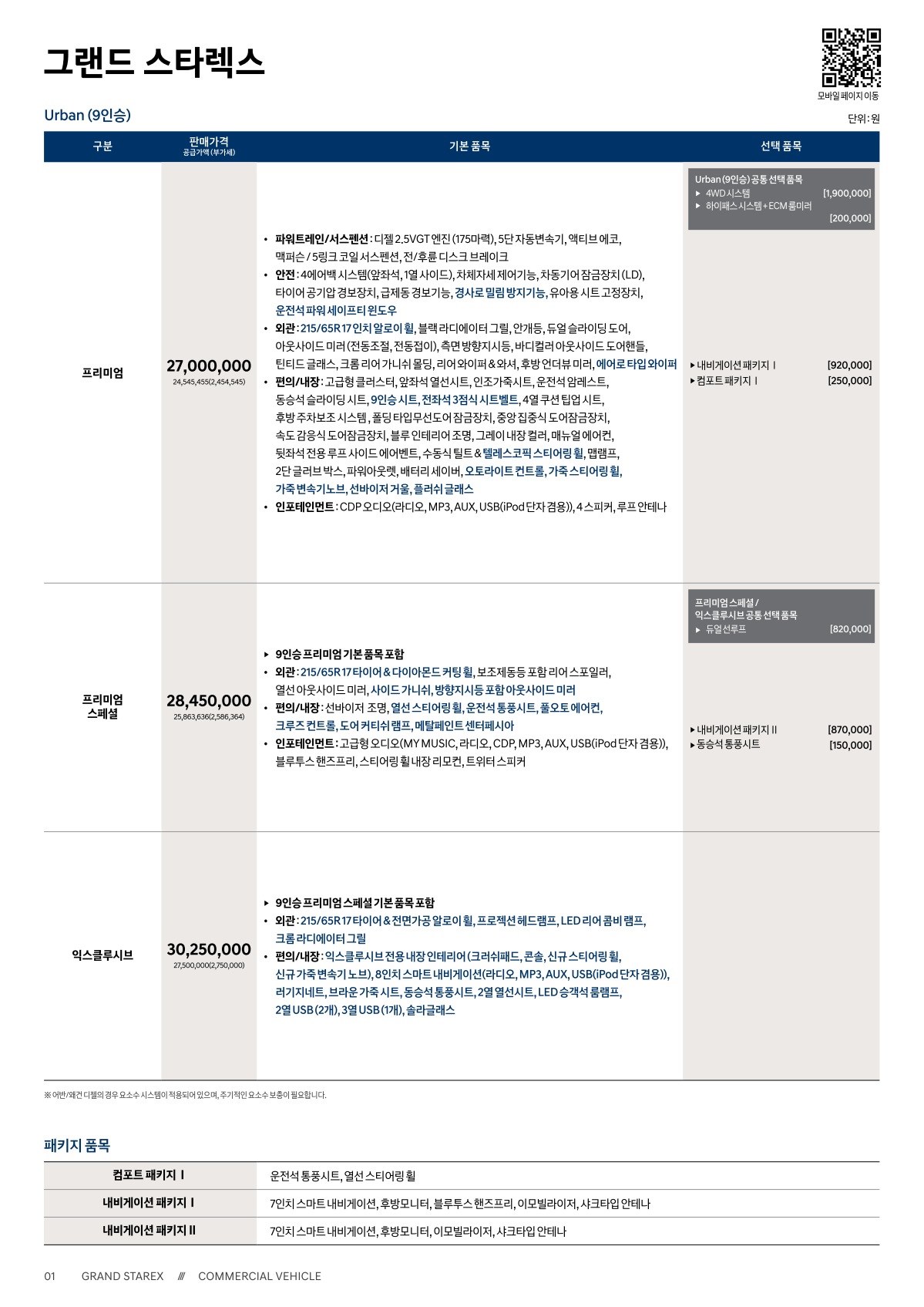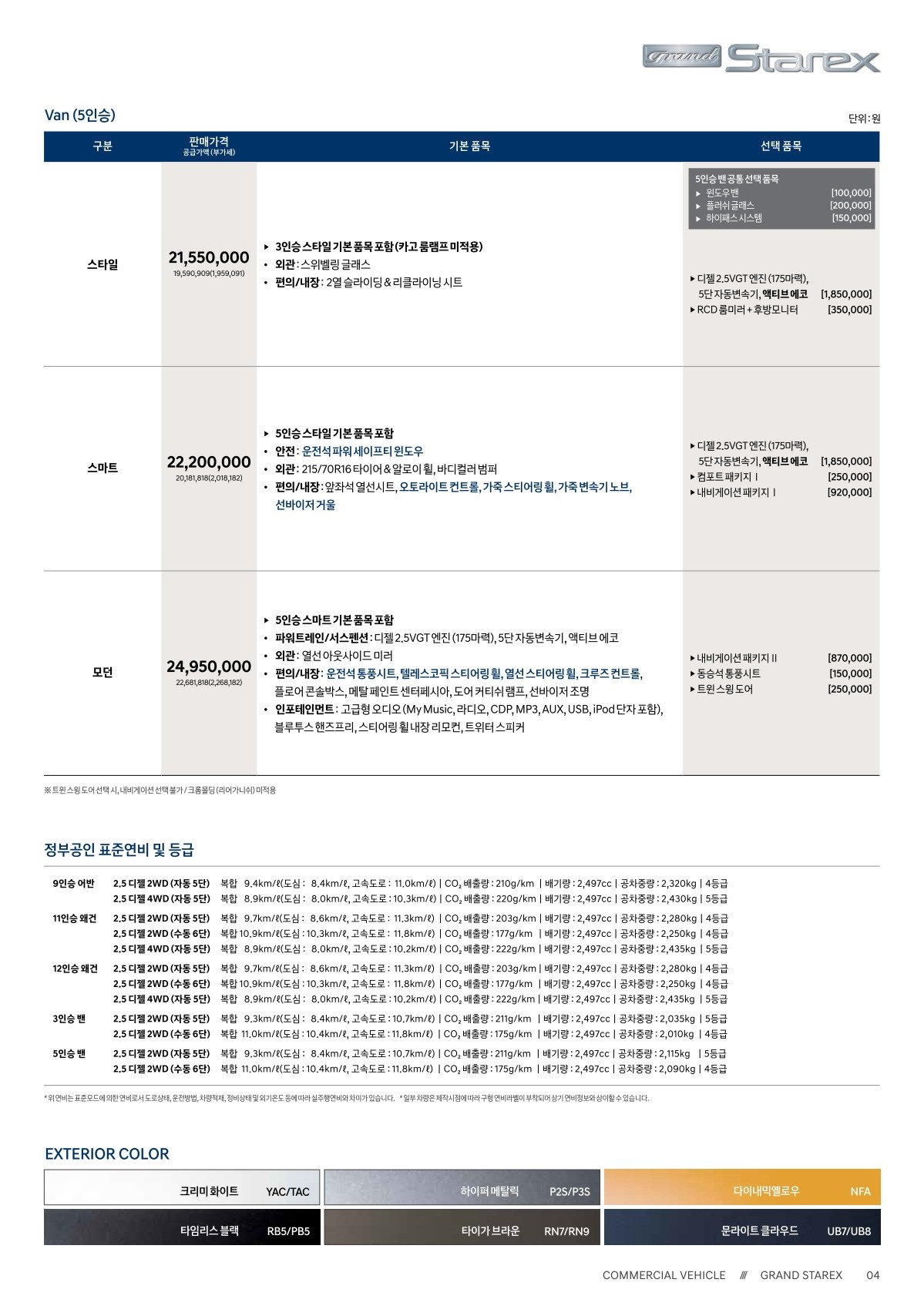 2018년 6월 그랜드스타렉스 리무진 신차가격표