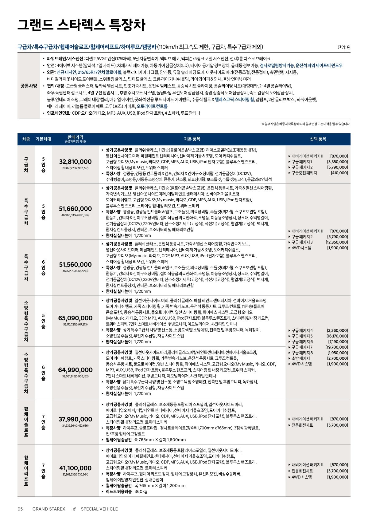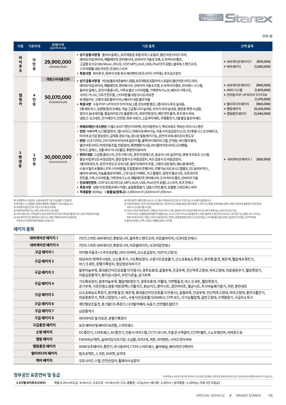 2019년 8월 그랜드스타렉스 특장차 가격표 (구급차/휠체어리프트/하이루프/캠핑카/어린이보호차) 가격표 입니다