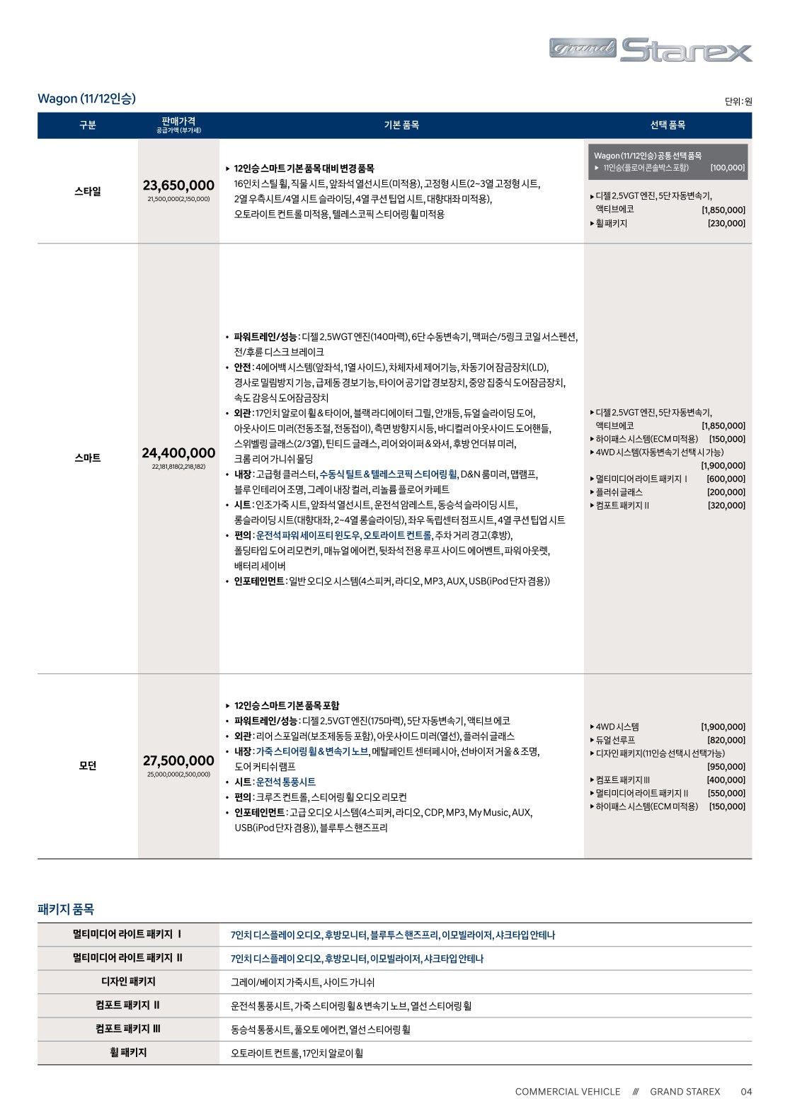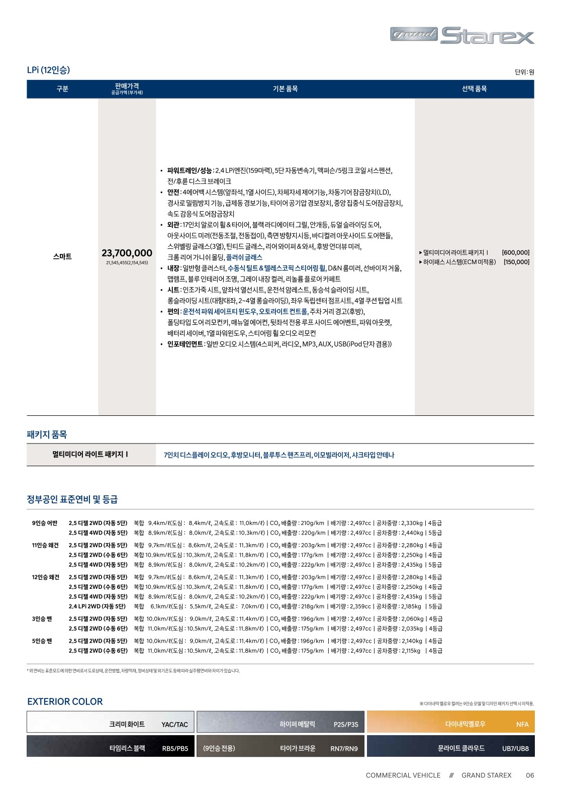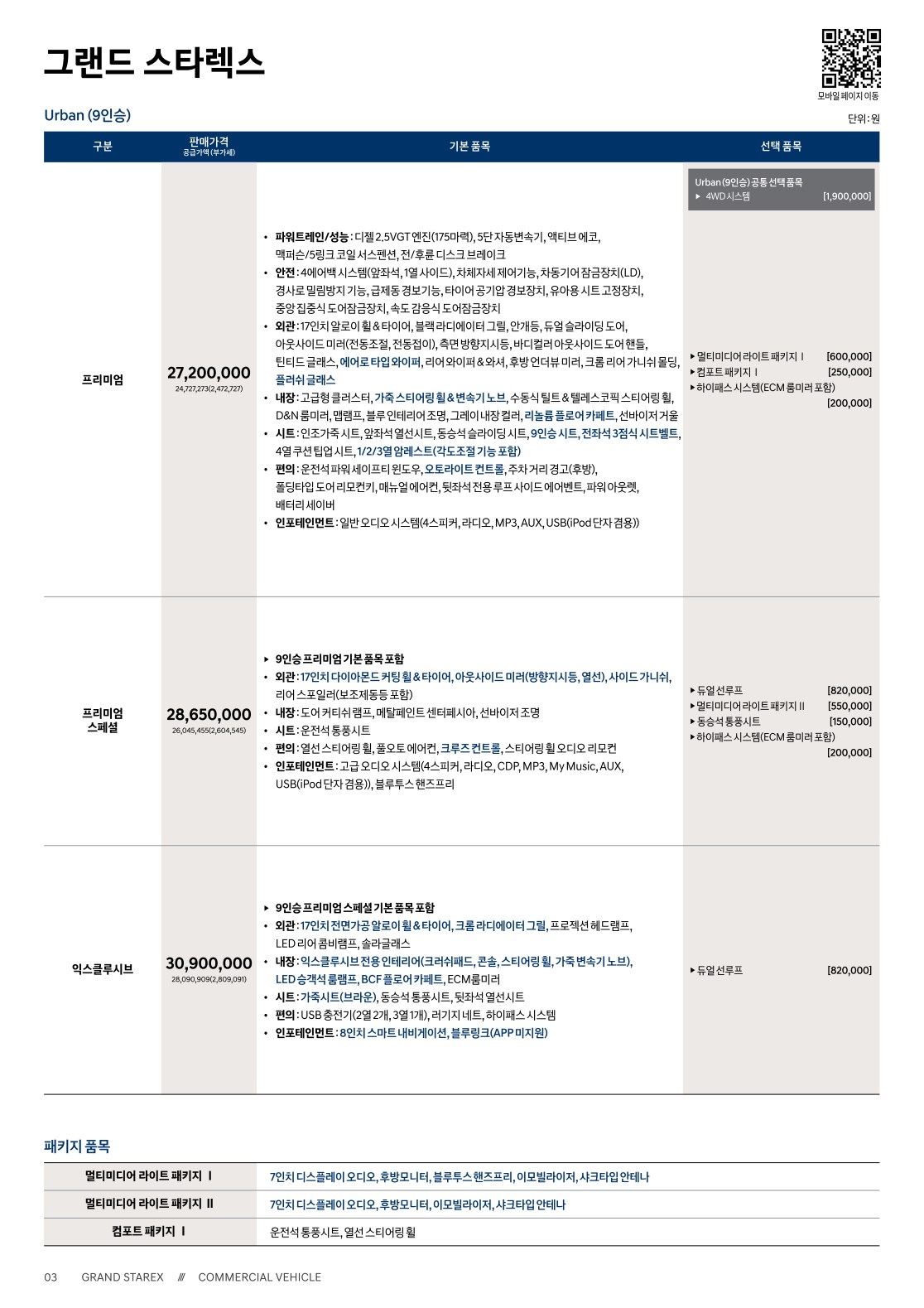 2019년 8월 그랜드스타렉스 가격표 (2020년형 그랜드스타렉스 출시 가격표)