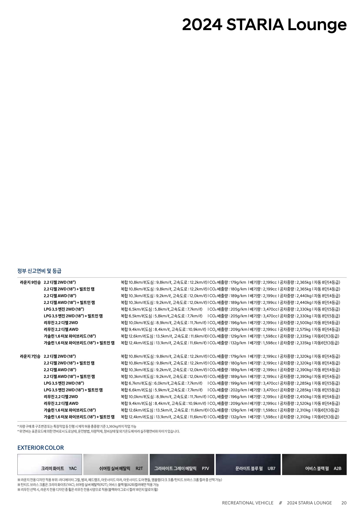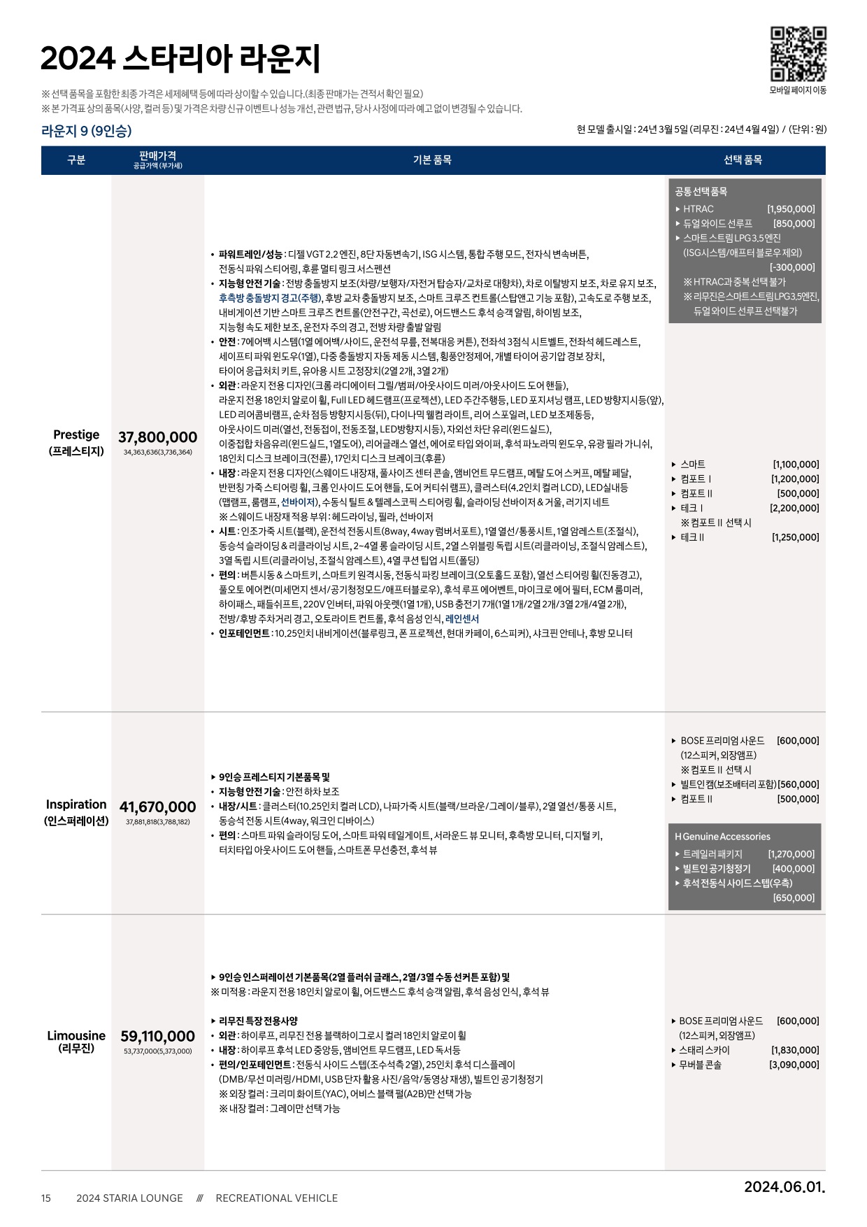 2024년 6월 스타리아 라운지 & 스타리아 라운지 하이브리드 신차가격표