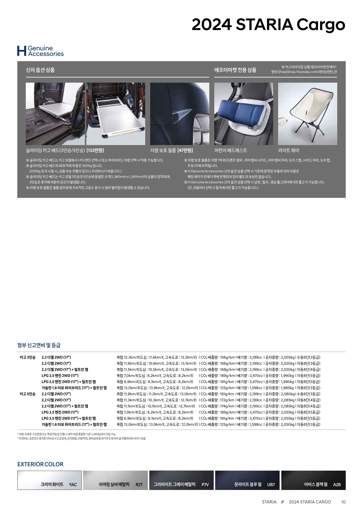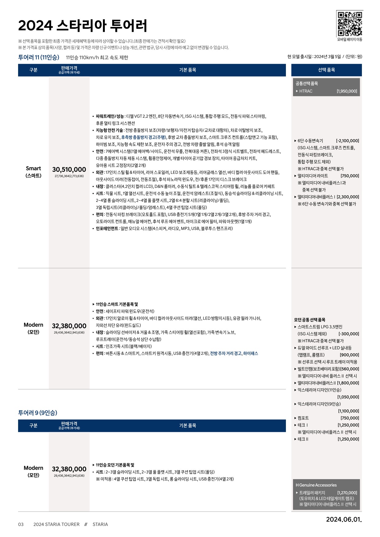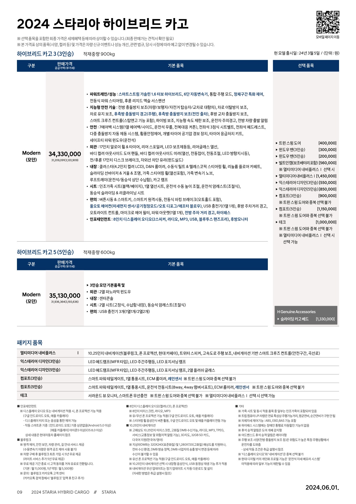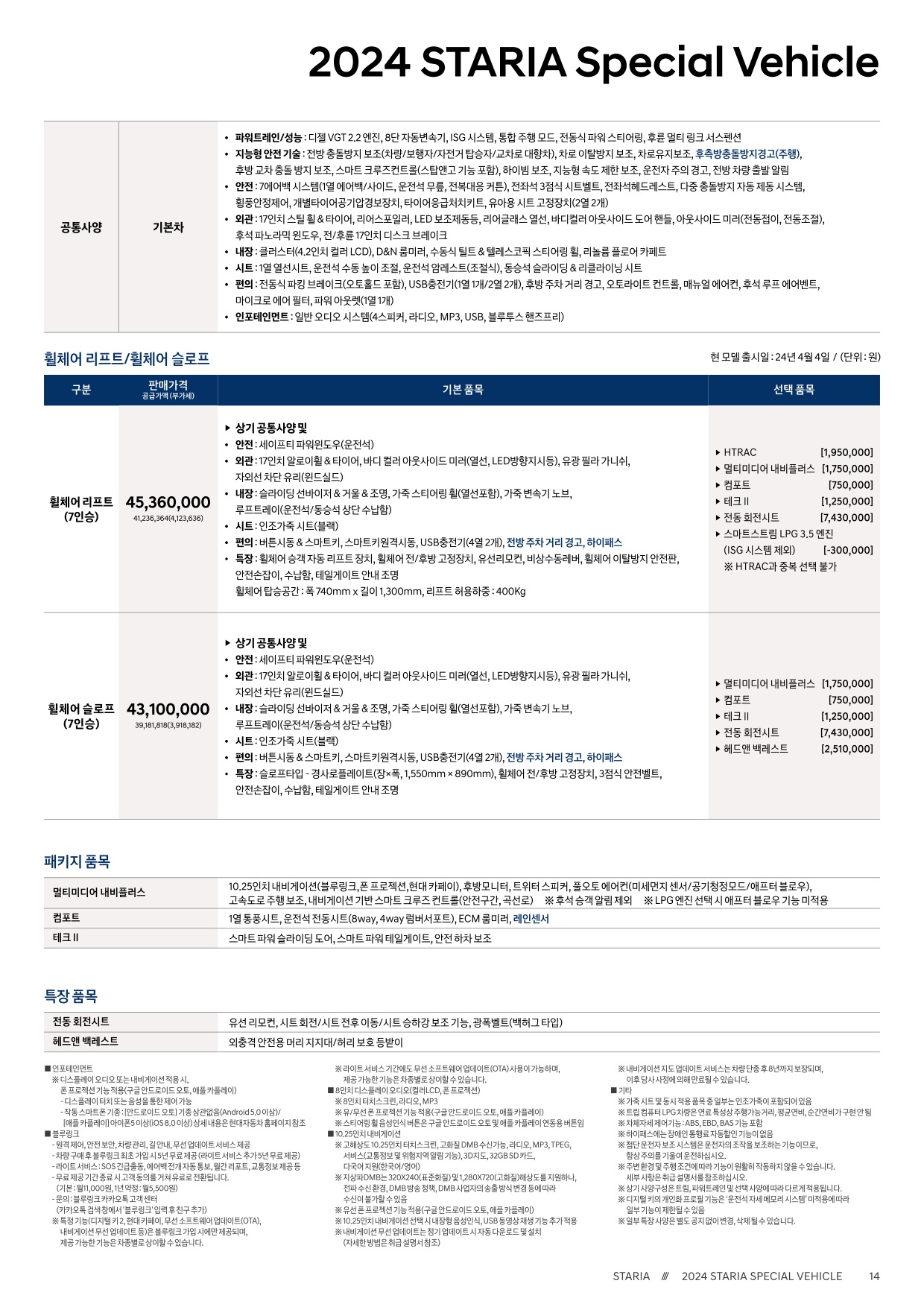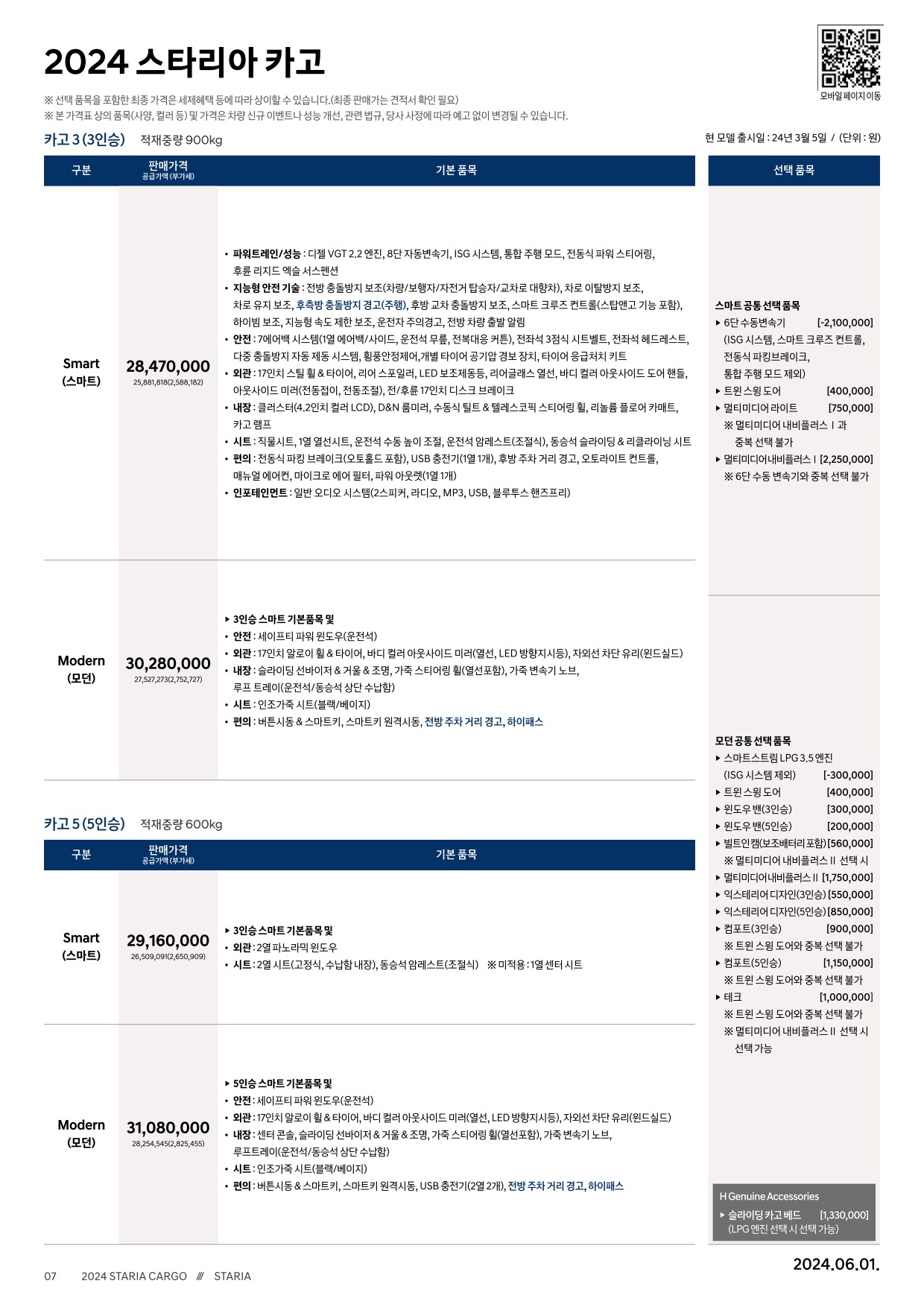 2024년 6월 스타리아 투어러 & 카고 (+하이브리드) & 특장차 신차가격표