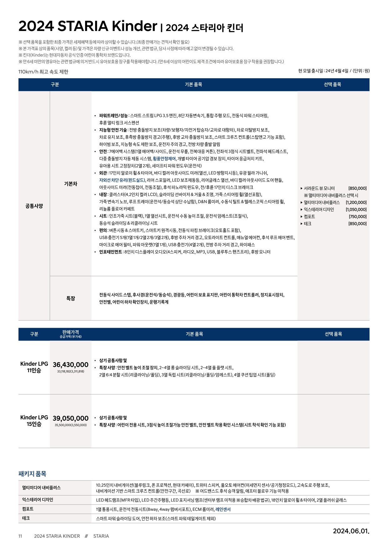 2024년 6월 스타리아 캠퍼 & 스타리아 킨더 신차가격표 (스타리아 캠핑카&어린이보호차량)