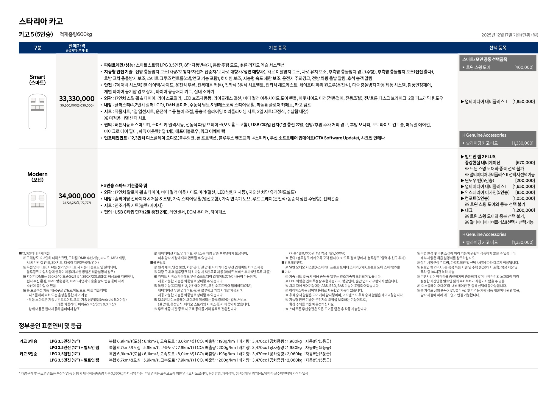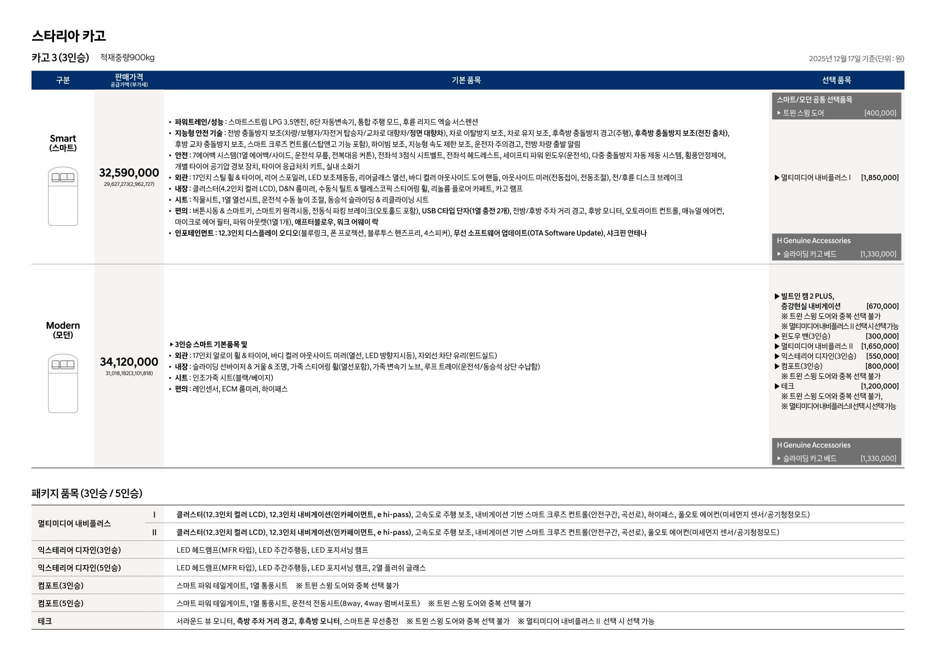 2025년 12월 스타리아 라운지 & 라운지 모빌리티 신차가격표 (더 뉴 스타리아 출시)