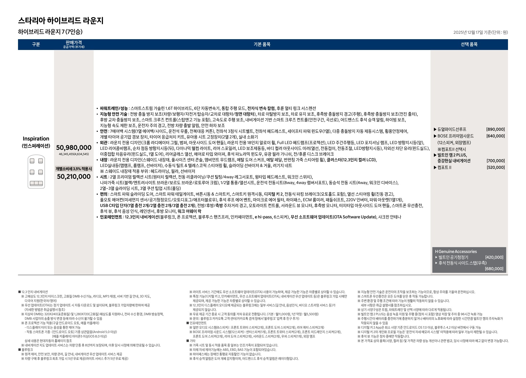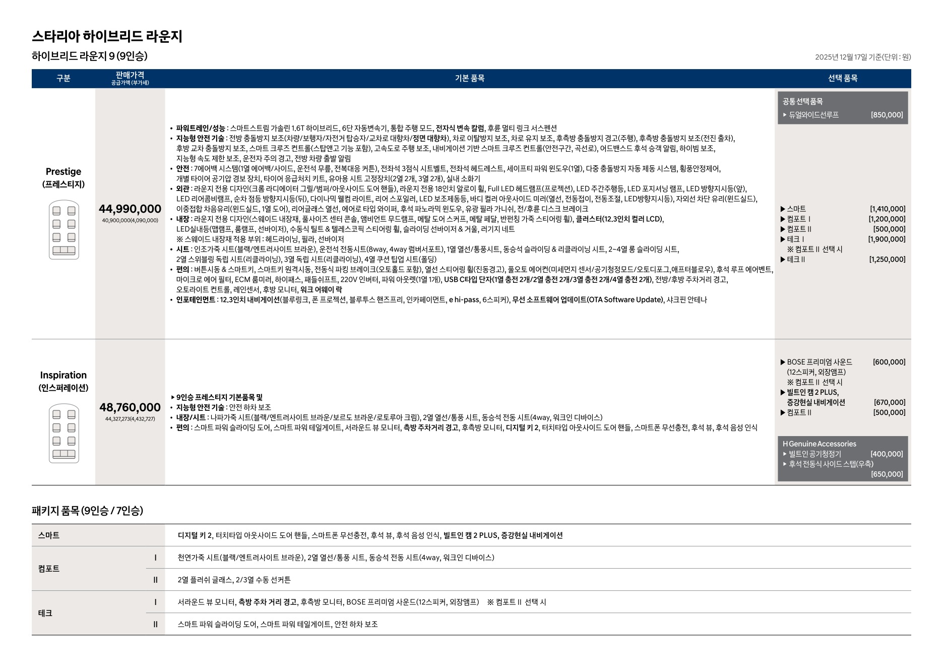 2025년 12월 스타리아 라운지 & 라운지 모빌리티 신차가격표 (더 뉴 스타리아 출시)