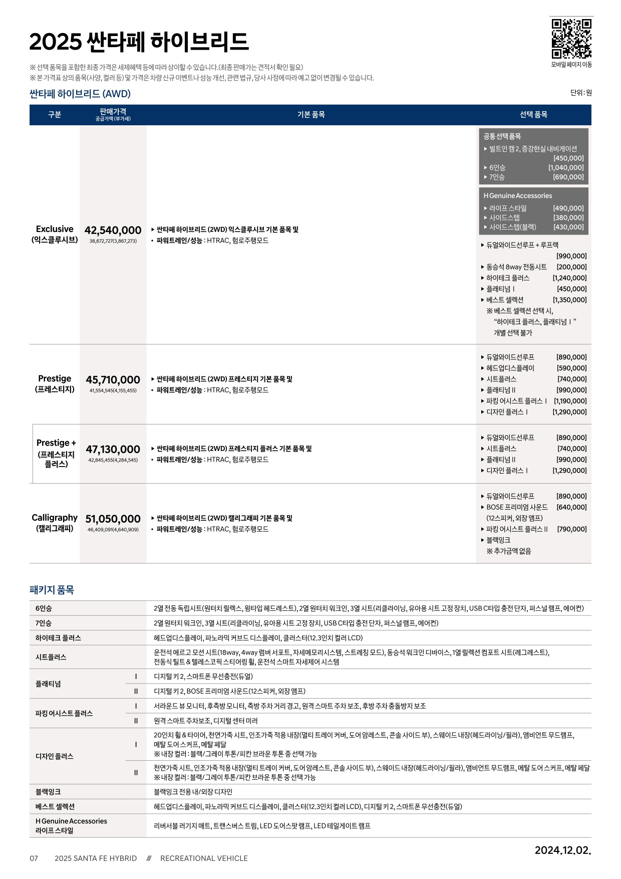2024년 8월 싼타페 신차가격표 (2025년형 싼타페 출시)