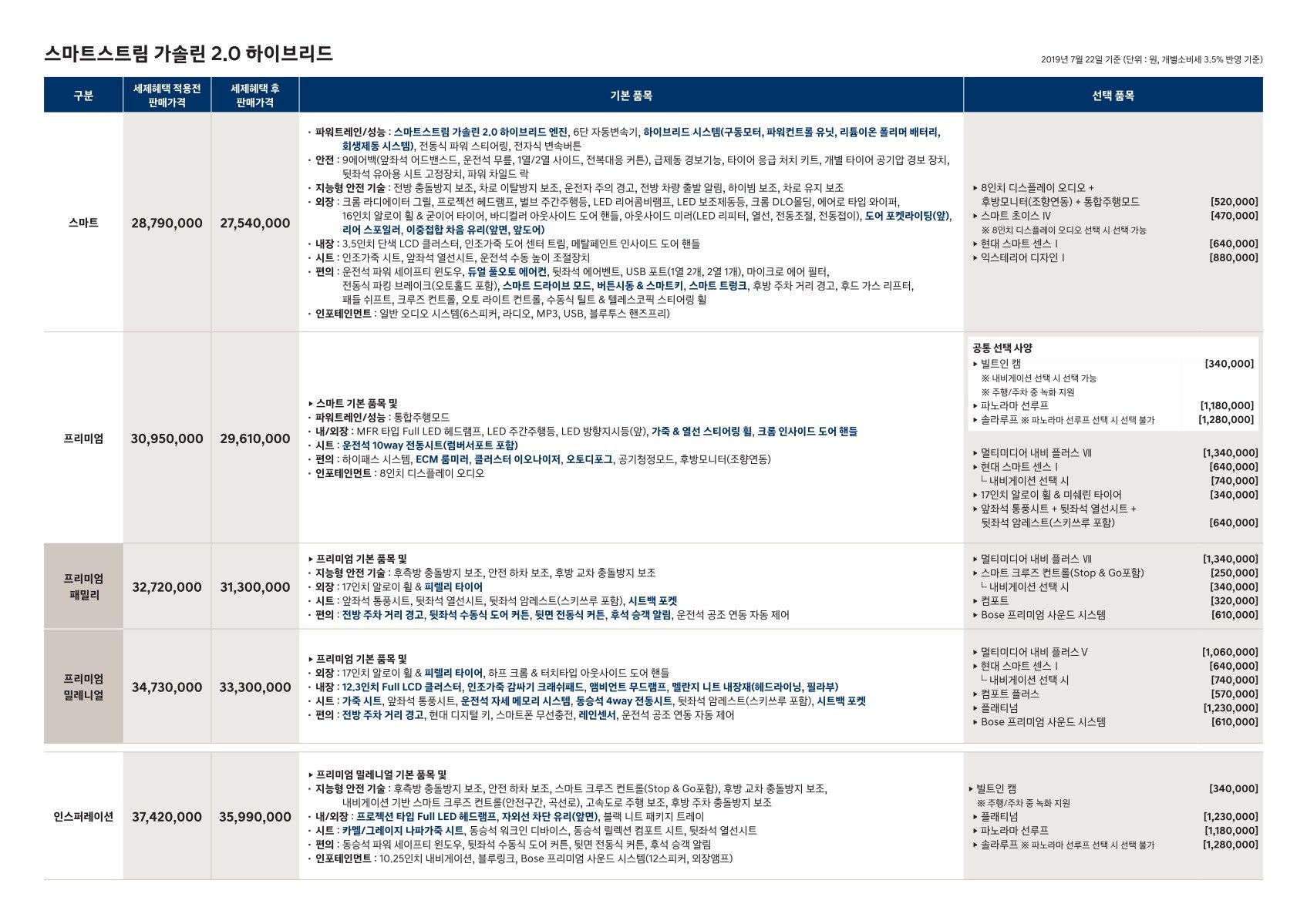 2019년 7월 쏘나타 하이브리드 가격표 (DN8 쏘나타 하이브리드 출시)