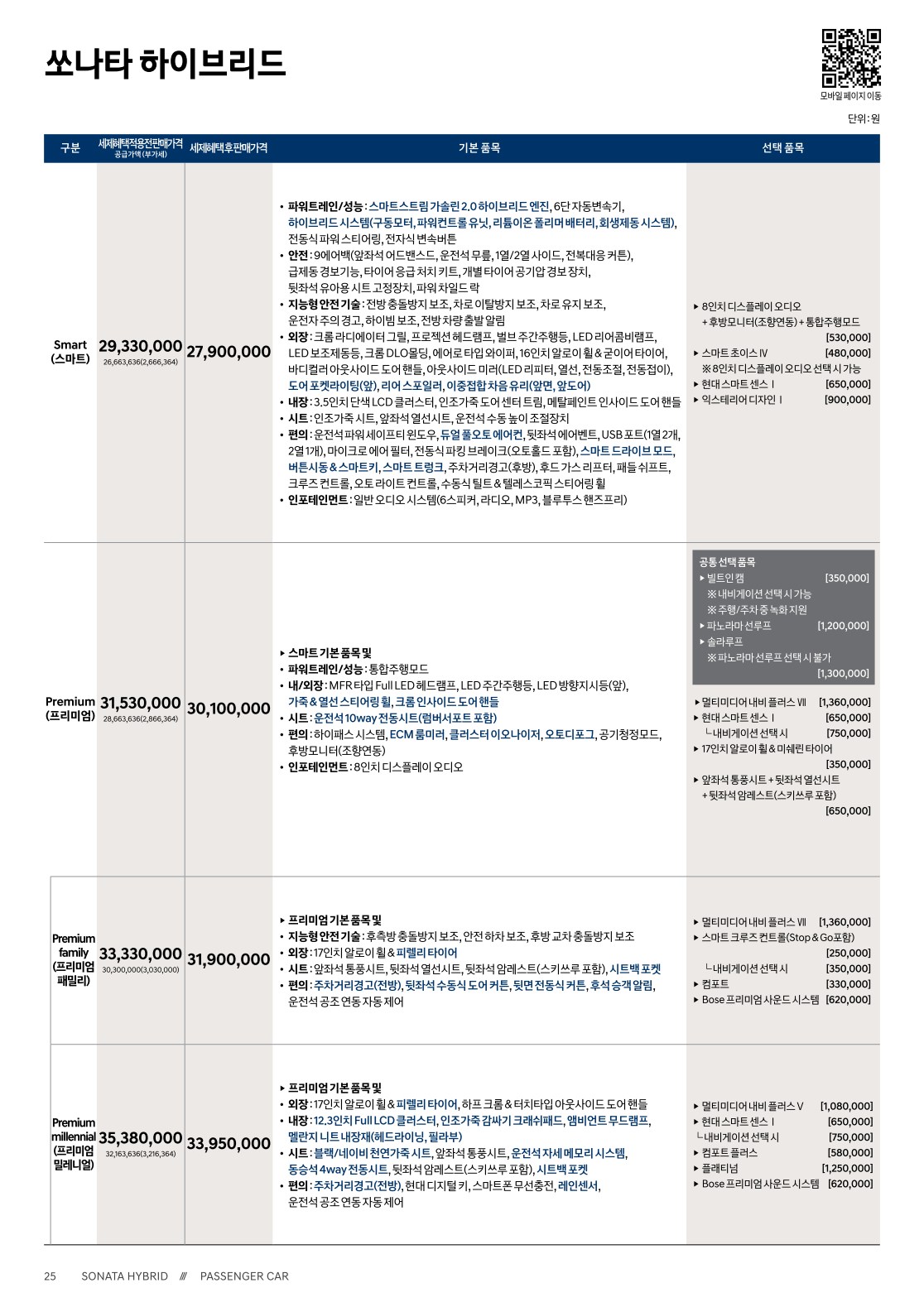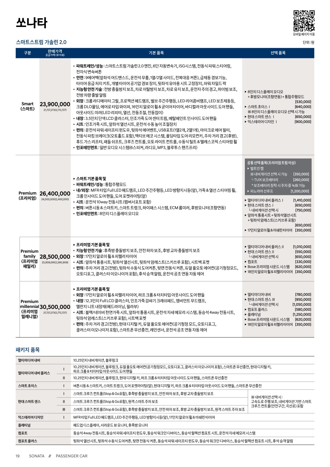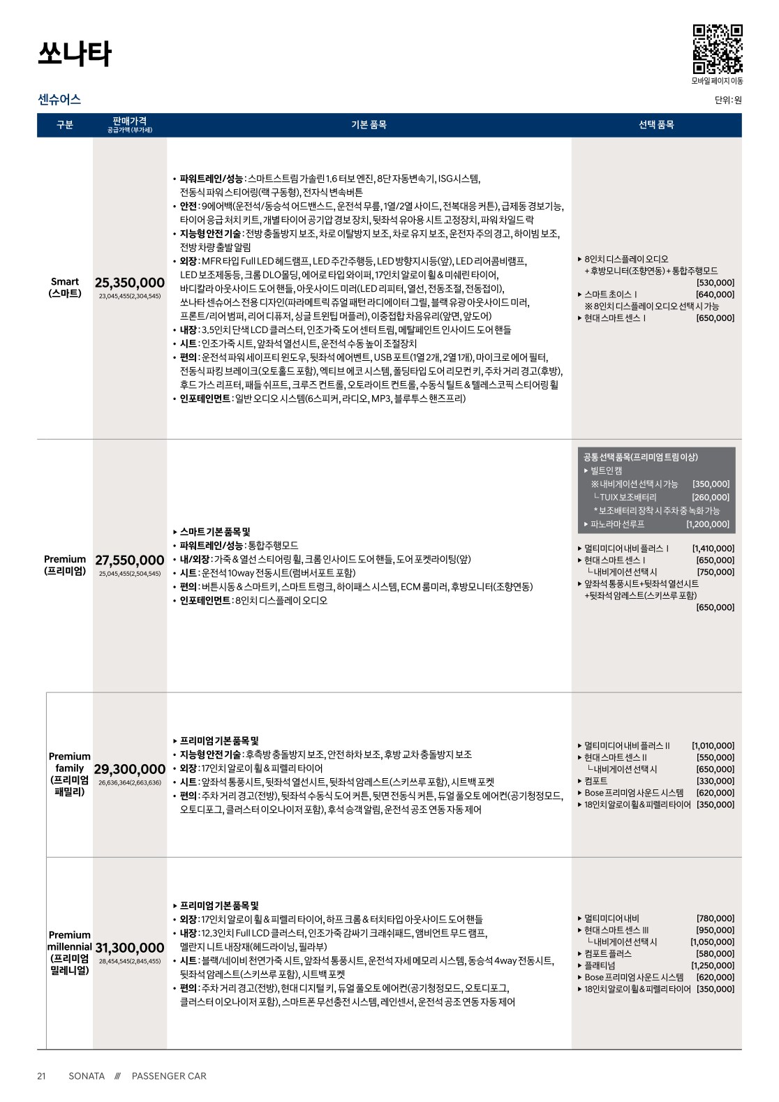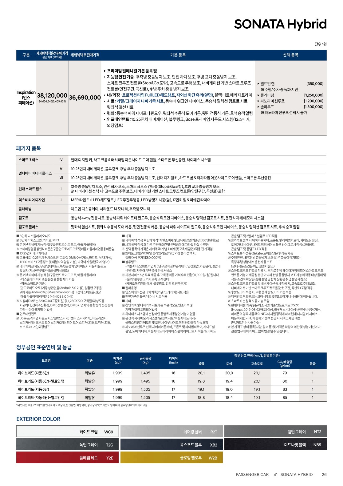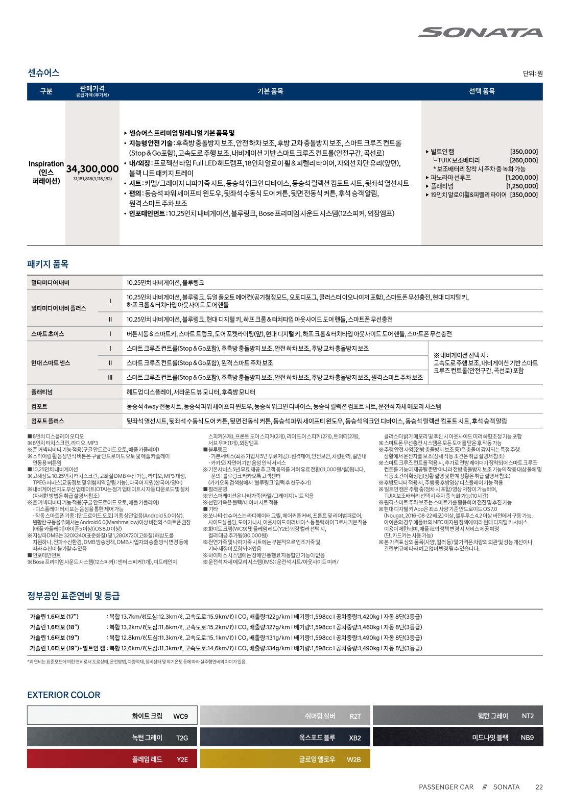 2019년 9월 쏘나타 신차가격표 (쏘나타 센슈어스 1.6터보 출시)