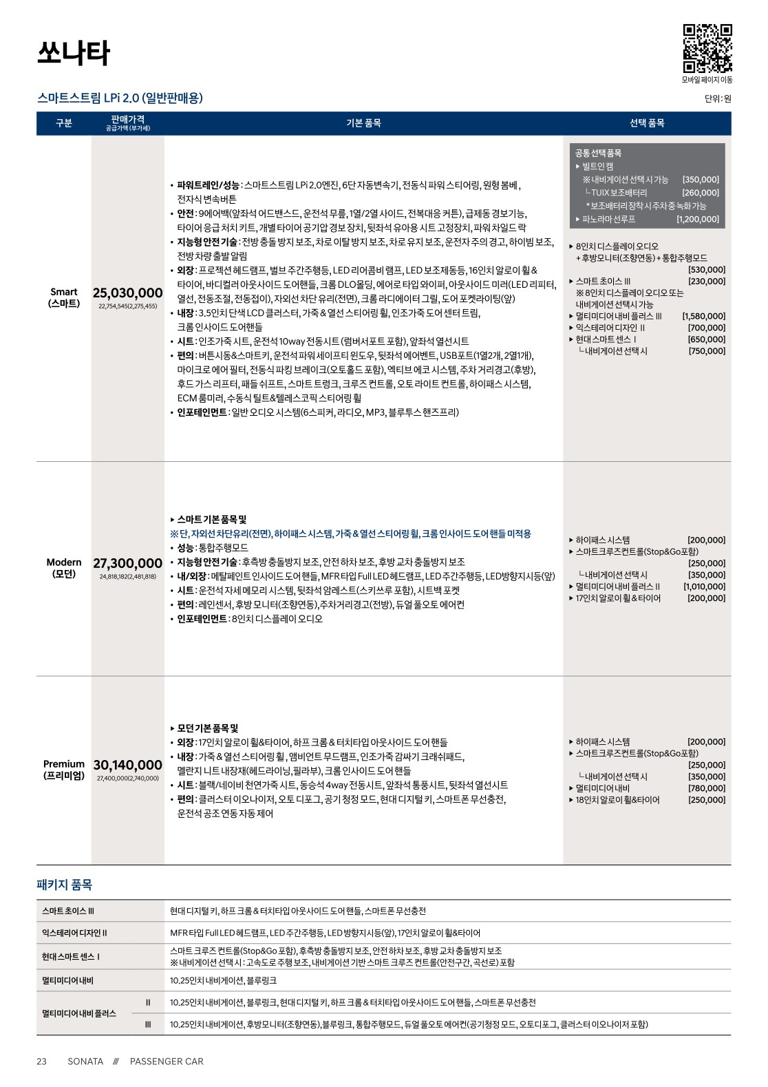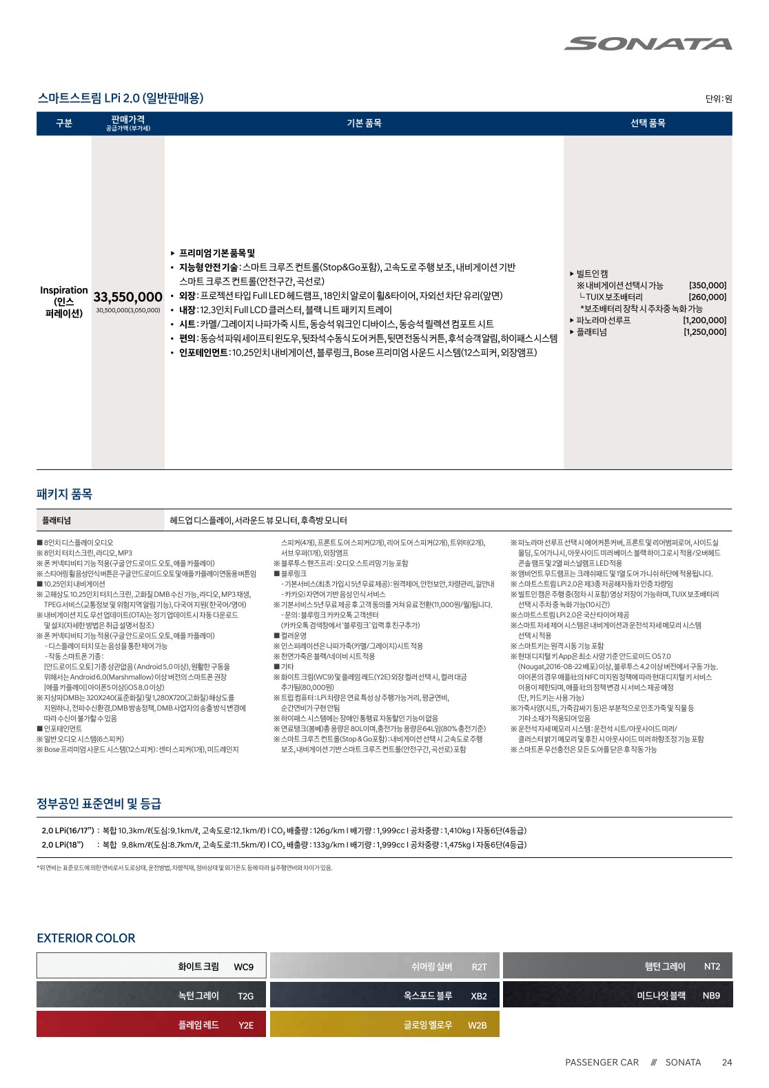 2020년 2월 쏘나타 신차가격표 (DN8 쏘나타 2.0, 센슈어스, 하이브리드, LPI 신차가격표)