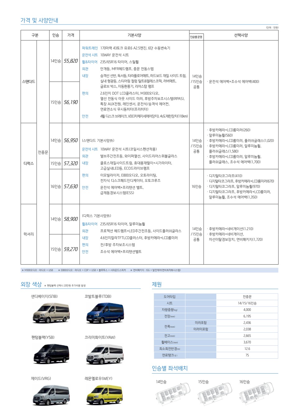 ※ 본 가격표의 모든 저작권은 해당 차량 제조사에 있습니다.