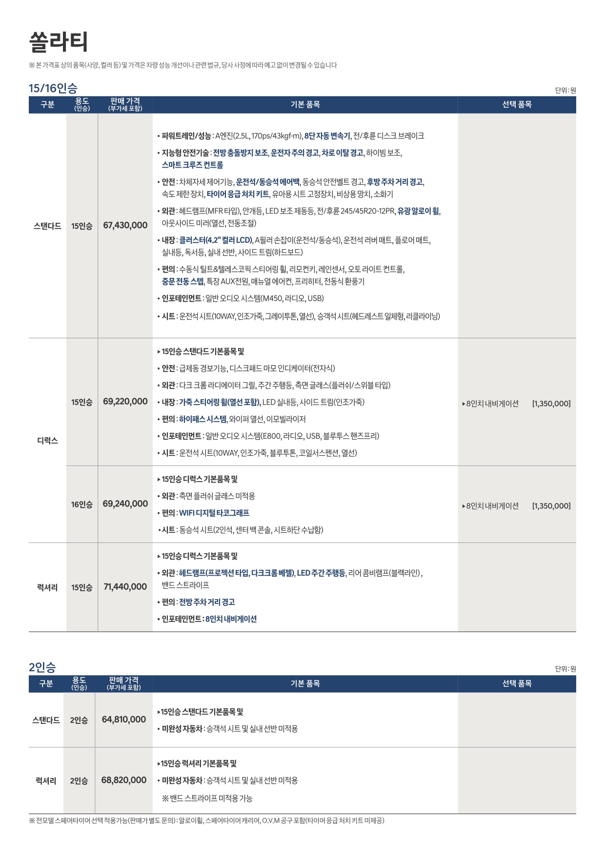 ※ 본 가격표의 모든 저작권은 해당 차량 제조사에 있습니다.