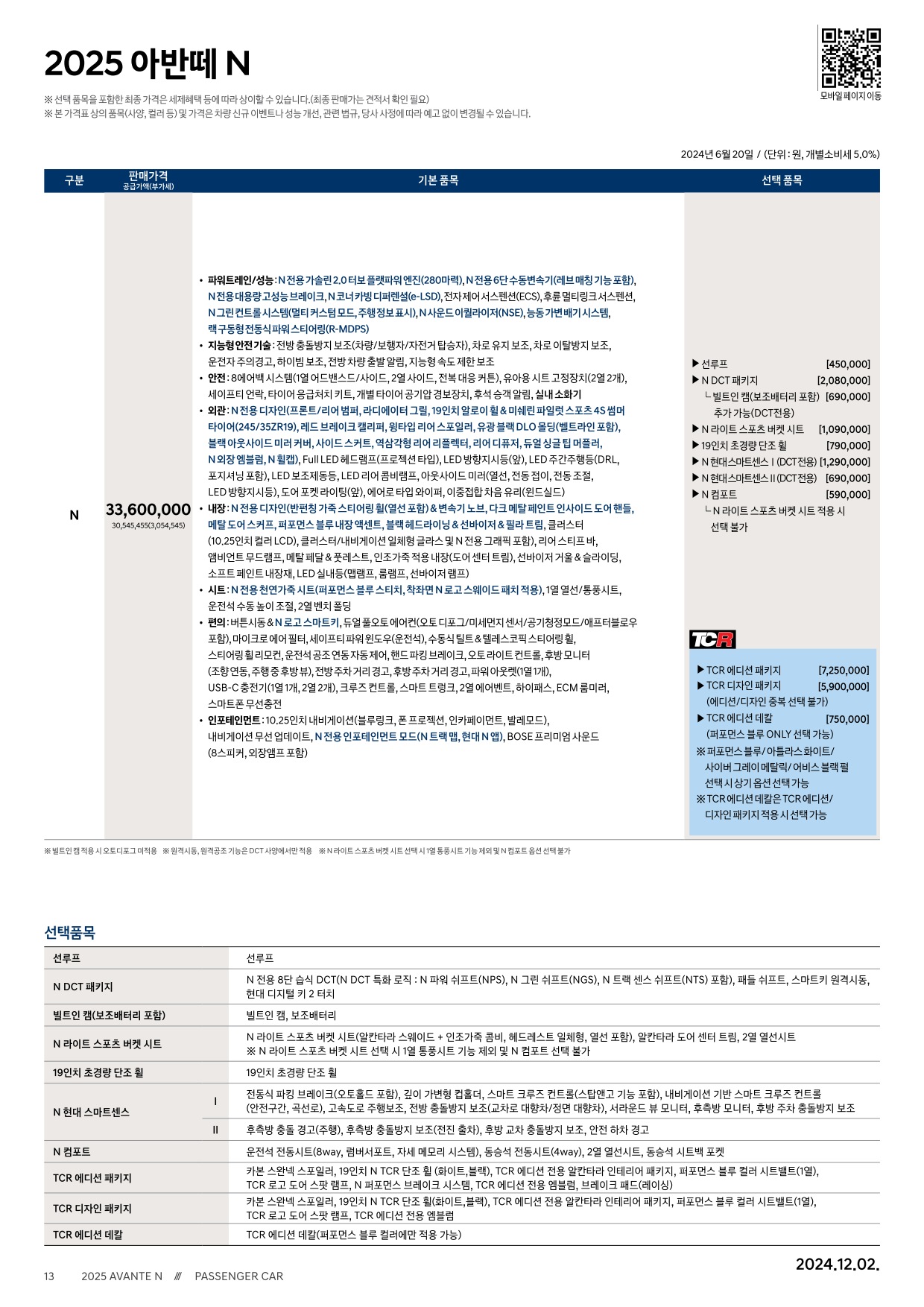 2024년 12월 아반떼N 신차가격표