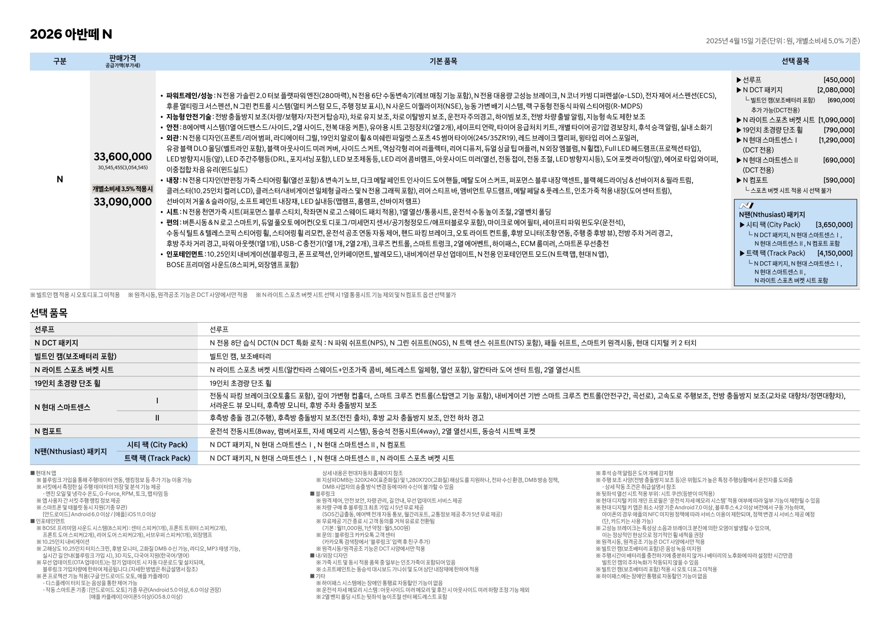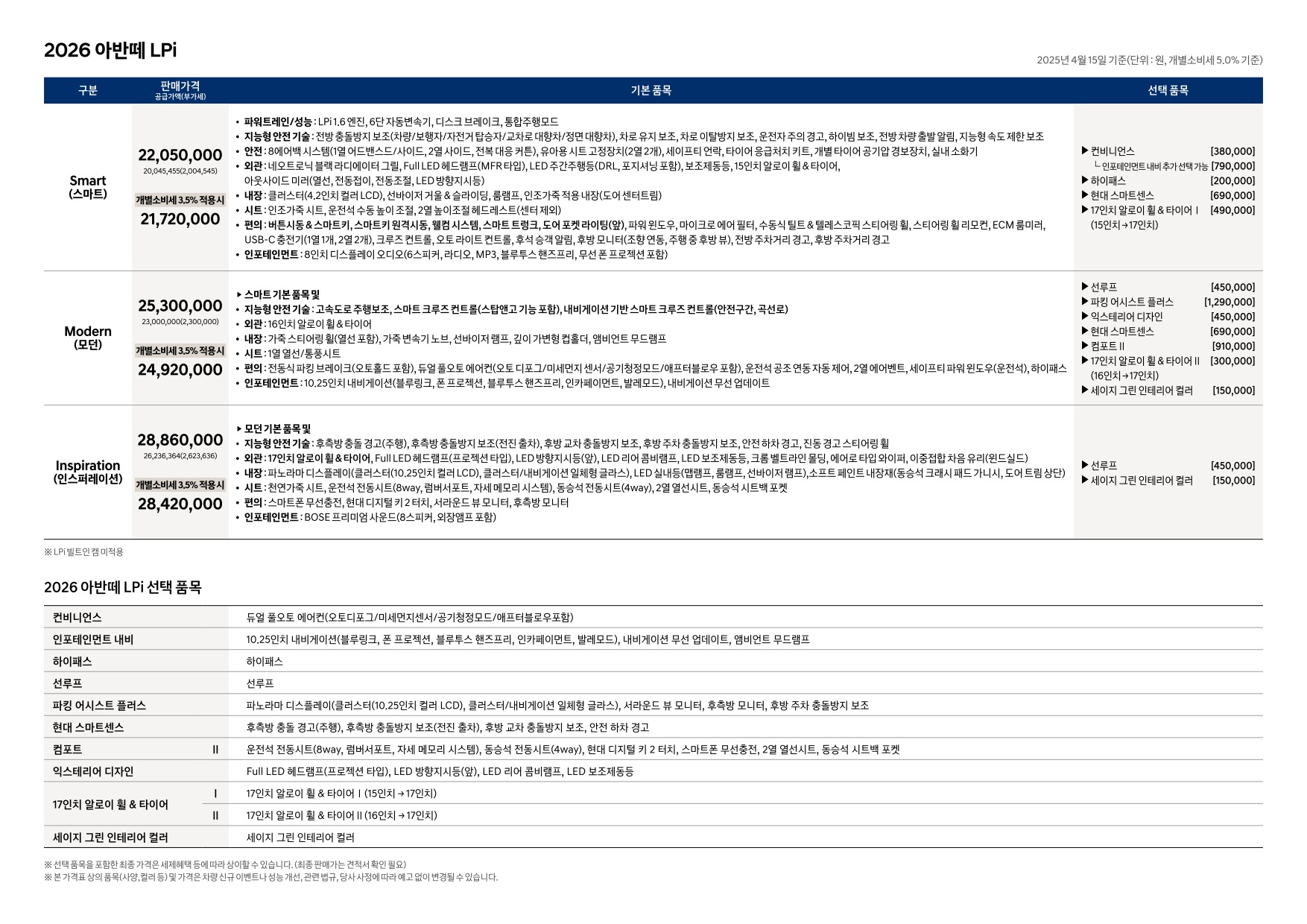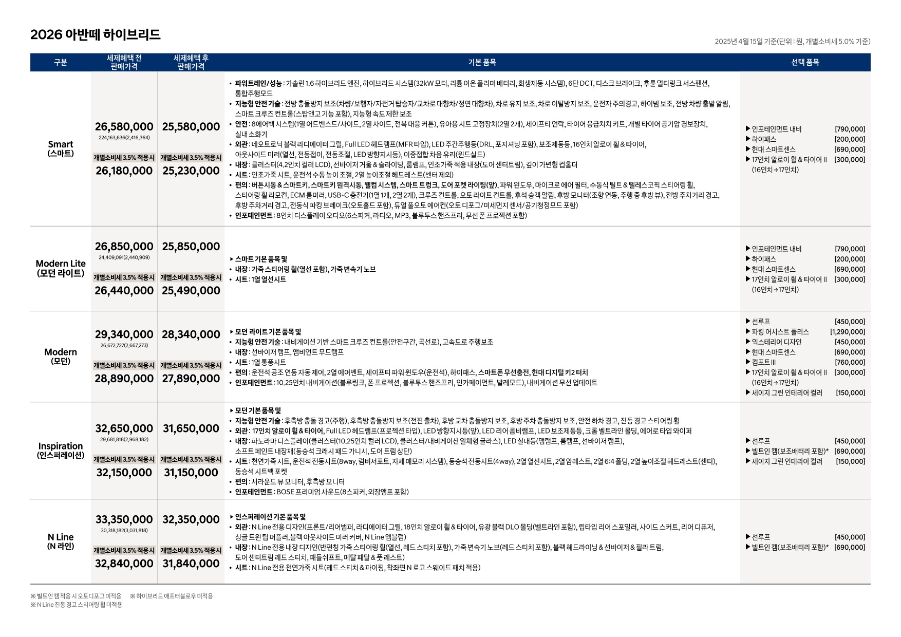 2025년 4월 아반떼 / 아반떼 하이브리드 / 아반떼N 신차가격표 (2026년형 아반떼 출시)