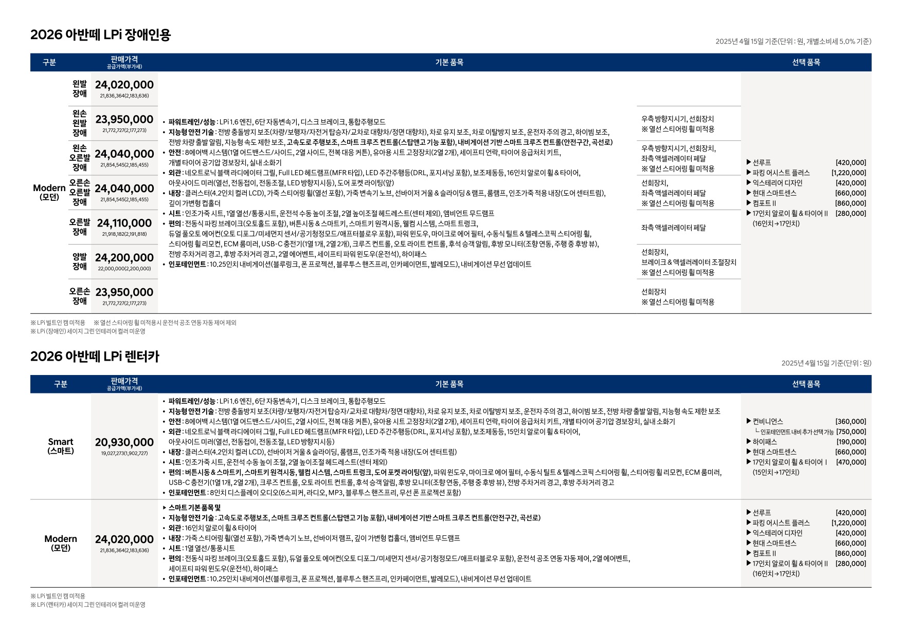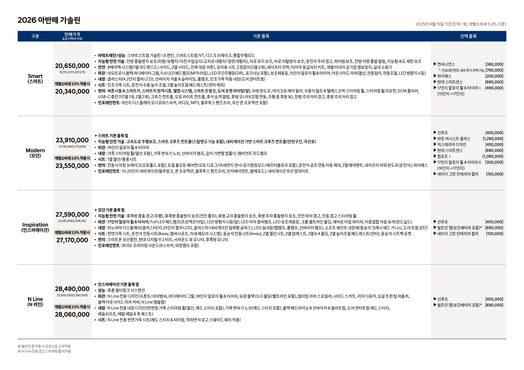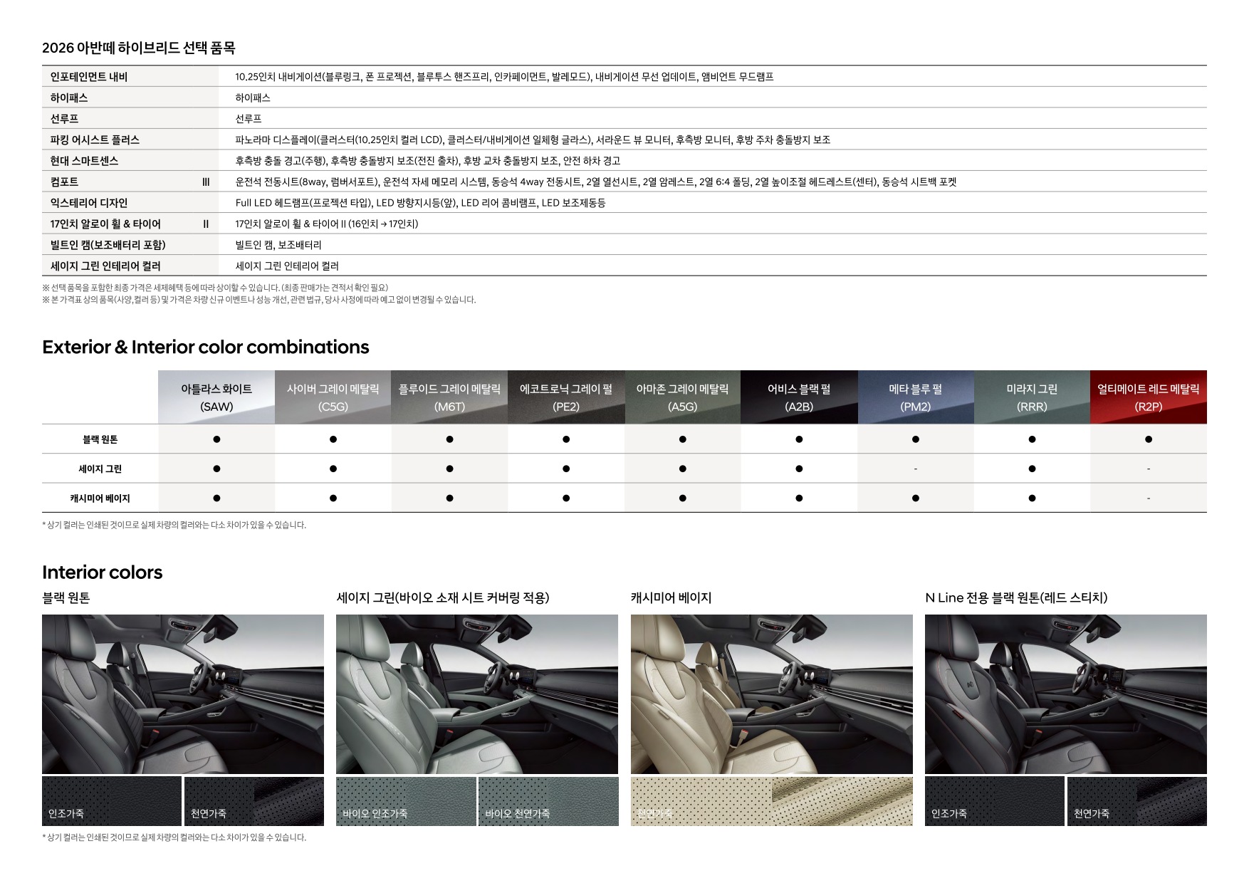 2025년 4월 아반떼 / 아반떼 하이브리드 / 아반떼N 신차가격표 (2026년형 아반떼 출시)
