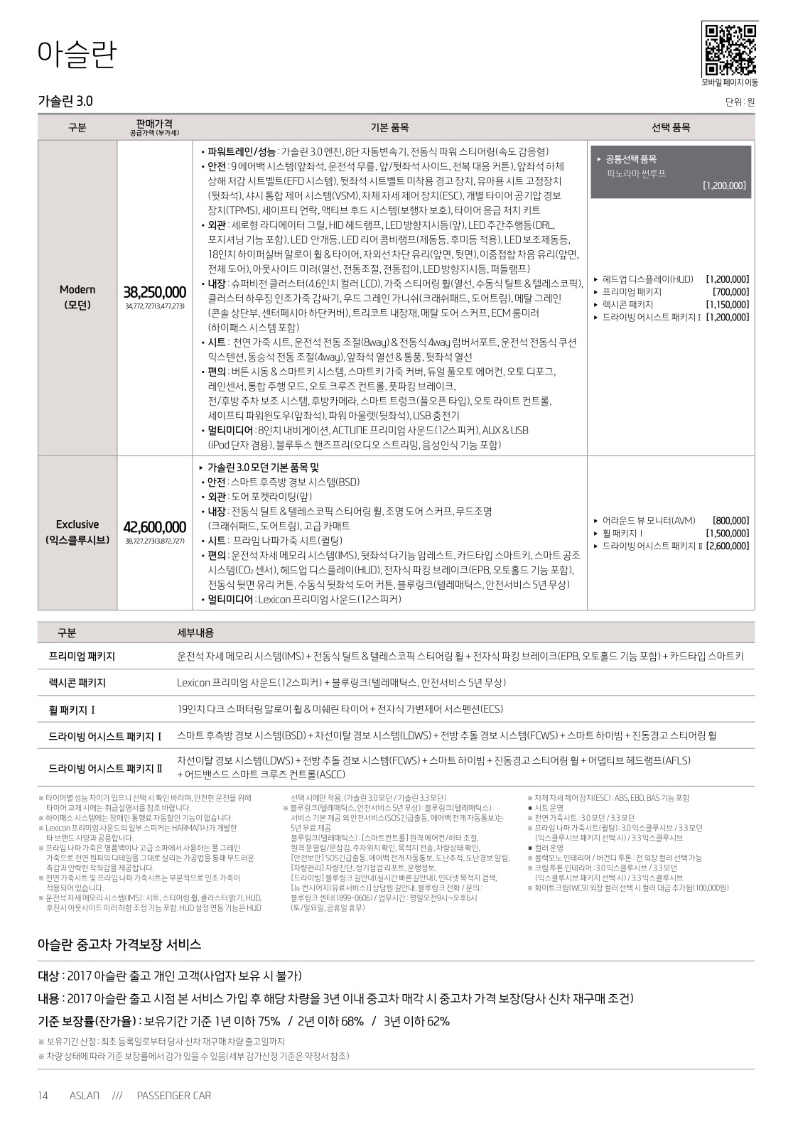 2016년 10월 아슬란 신차가격표