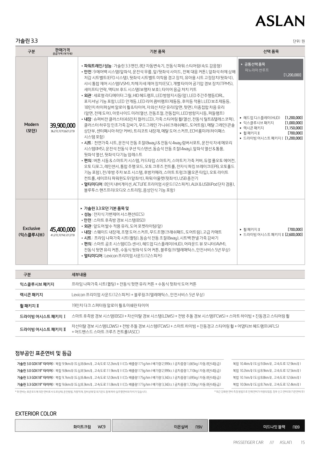 2015년 12월 아슬란 신차가격표