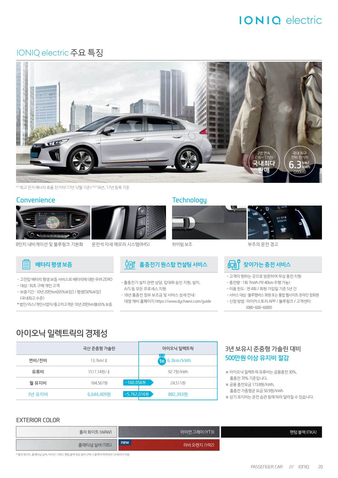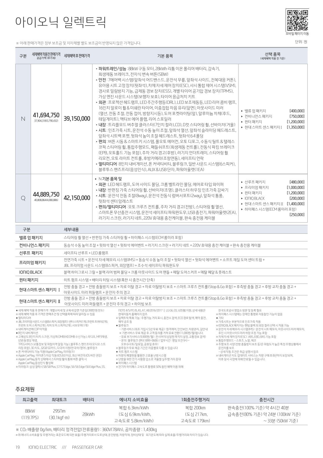 2018년 5월 아이오닉 일렉트릭 (아이오닉 전기차) 신차가격표