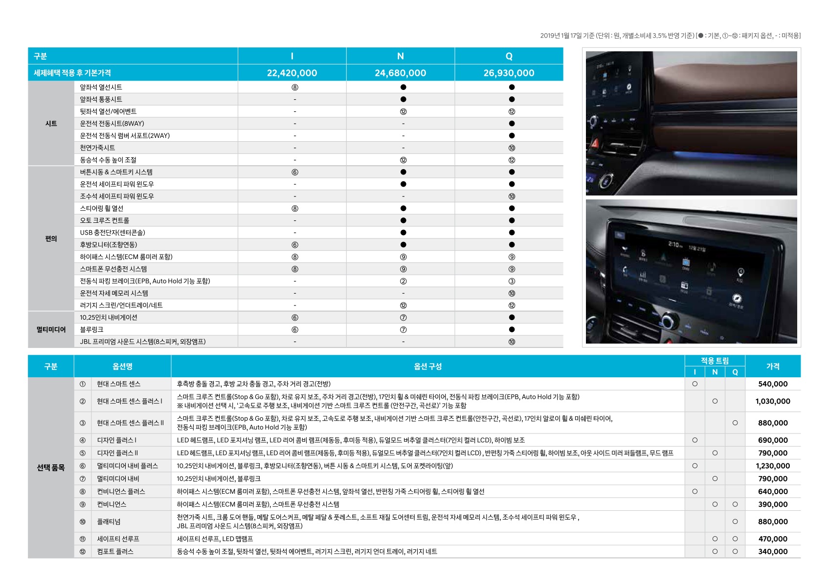 ※ 본 가격표의 모든 저작권은 해당 차량 제조사에 있습니다.