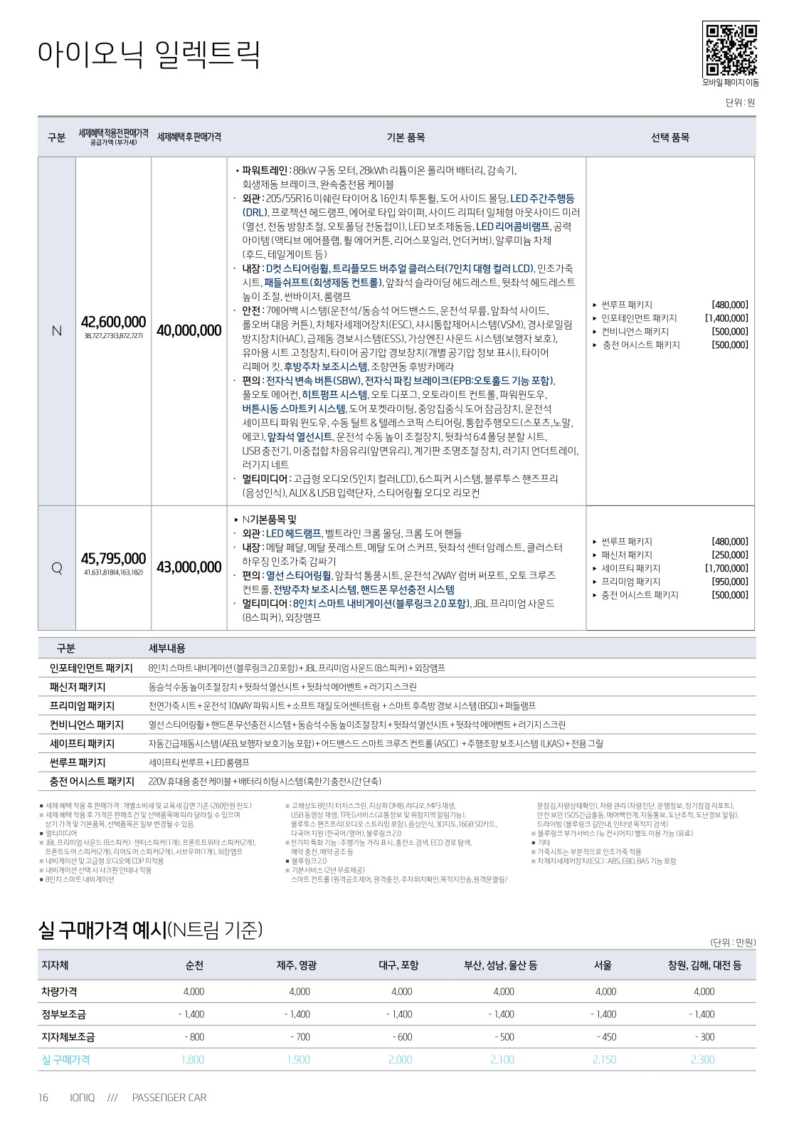 2016년 9월 아이오닉 일렉트릭 신차가격표