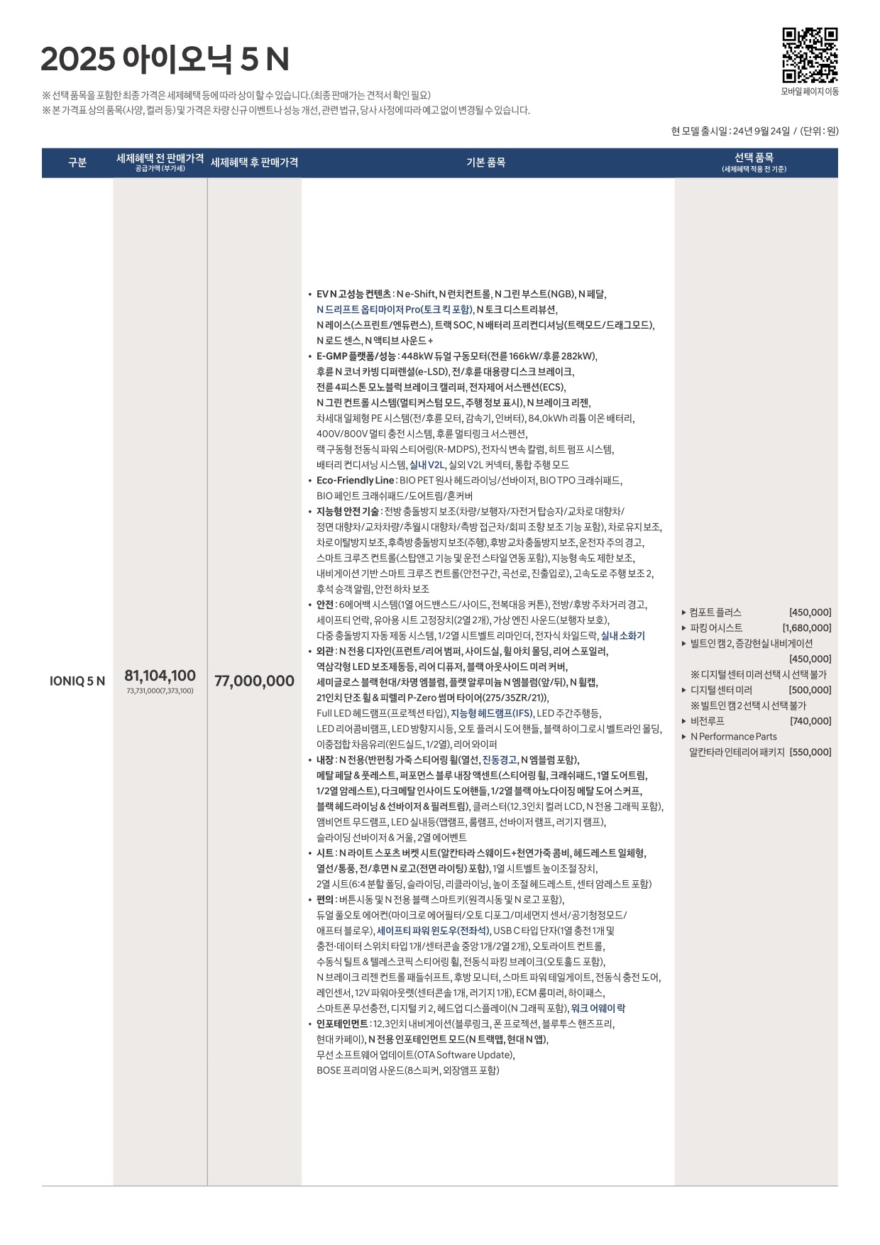 2024년 9월 아이오닉5N 신차가격표 (2025년형 아이오닉5N 출시)