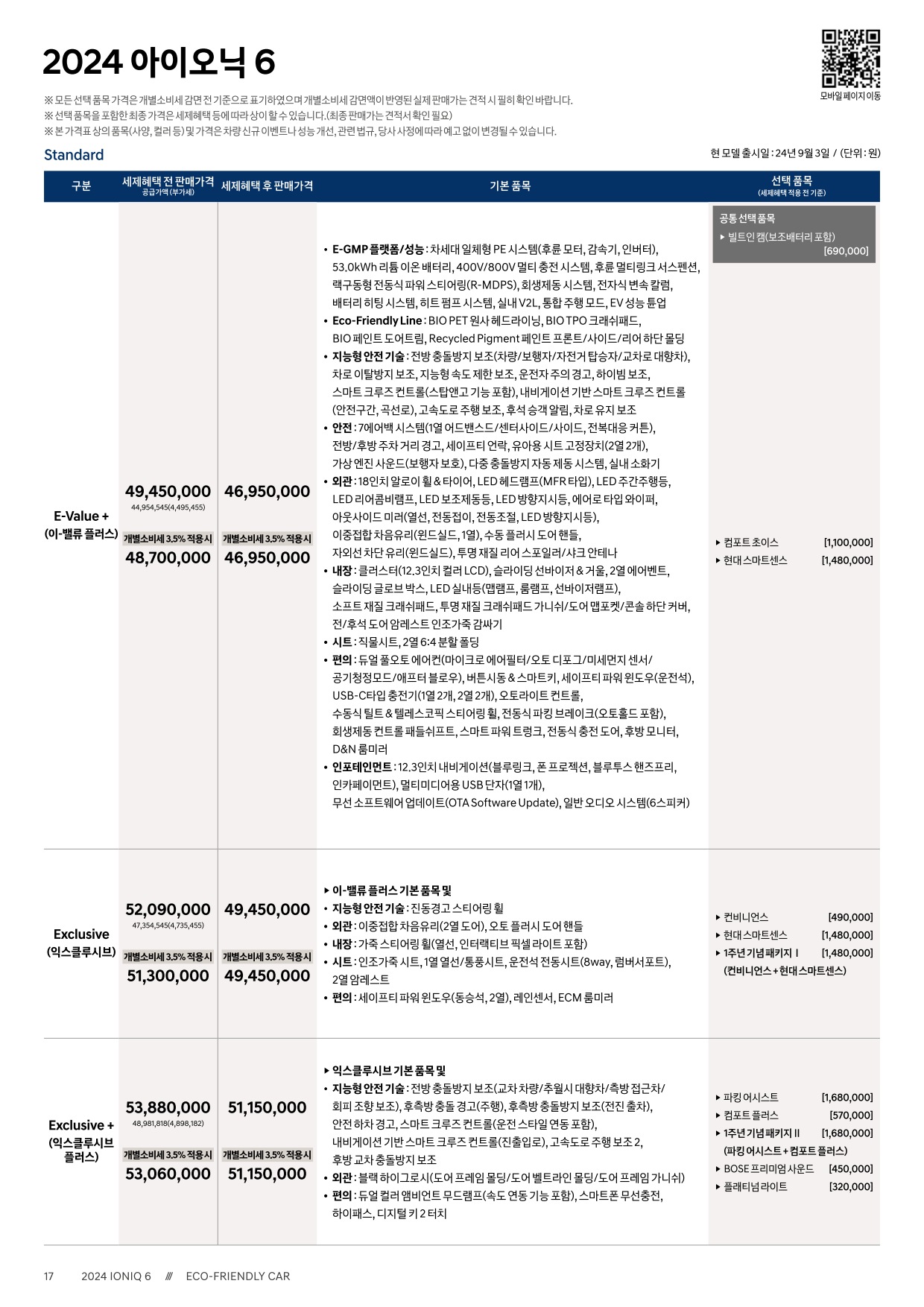 2024년 12월 아이오닉6 신차가격표