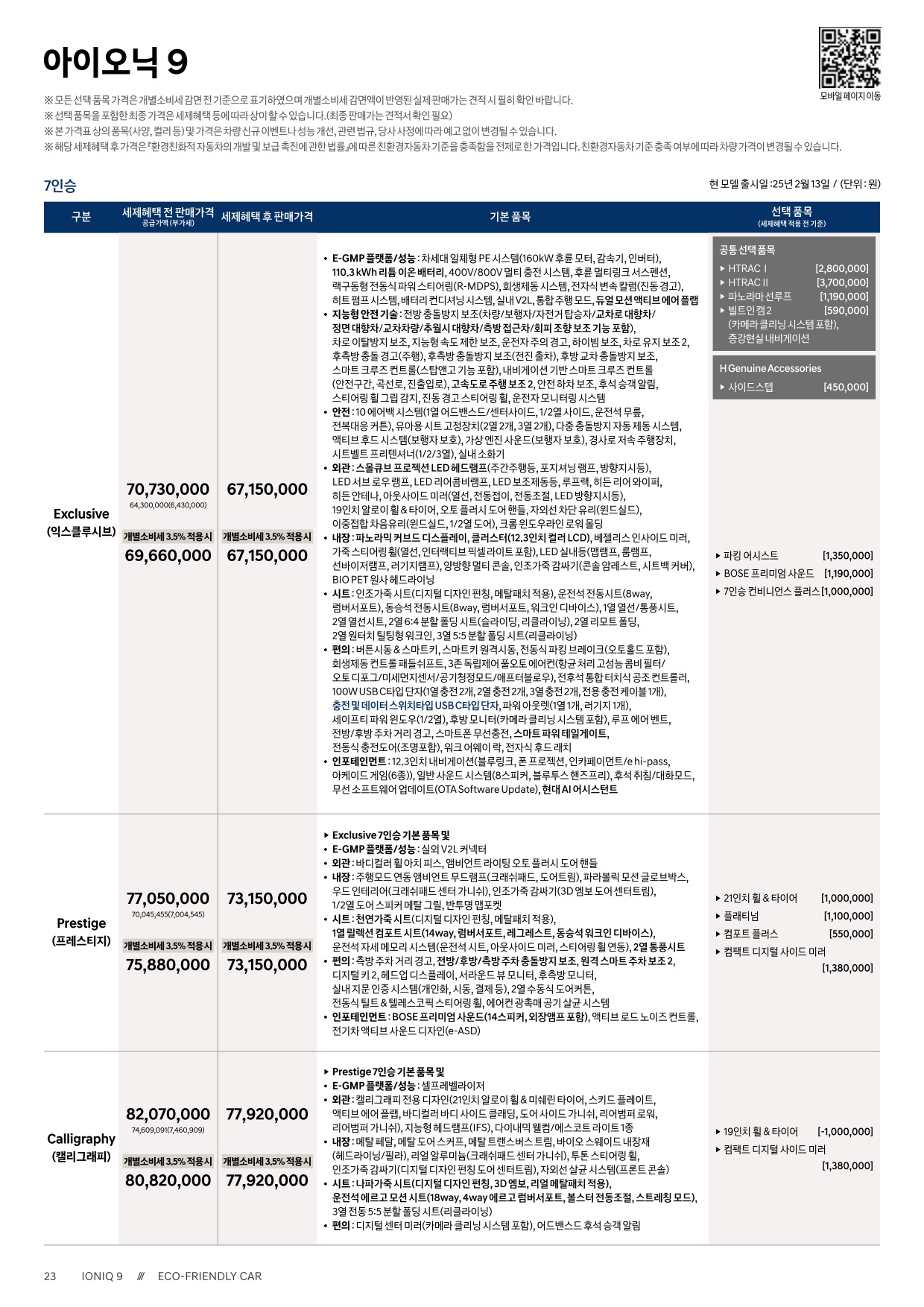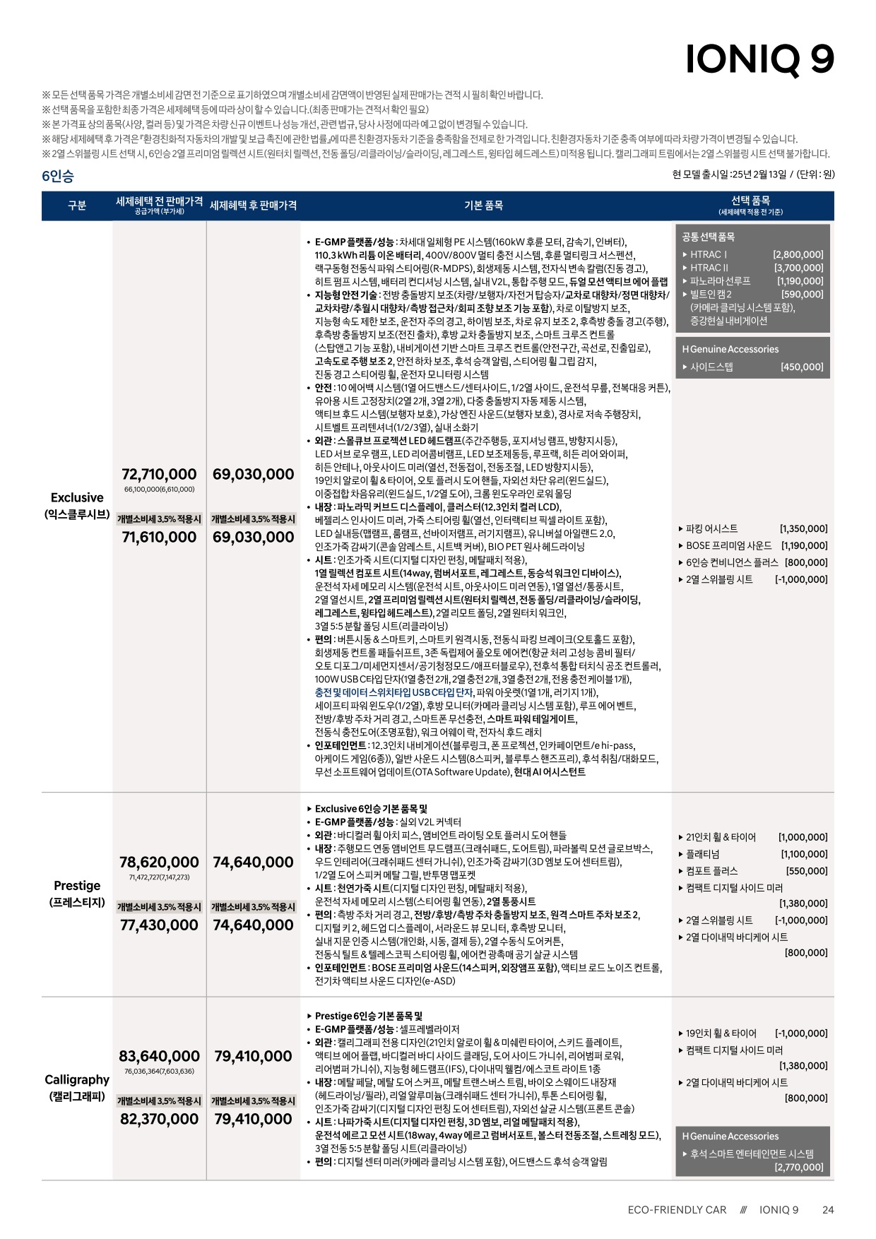 2025년 2월 아이오닉9 신차가격표 (아이오닉9 출시)
