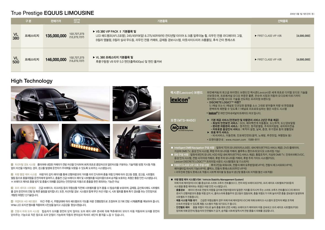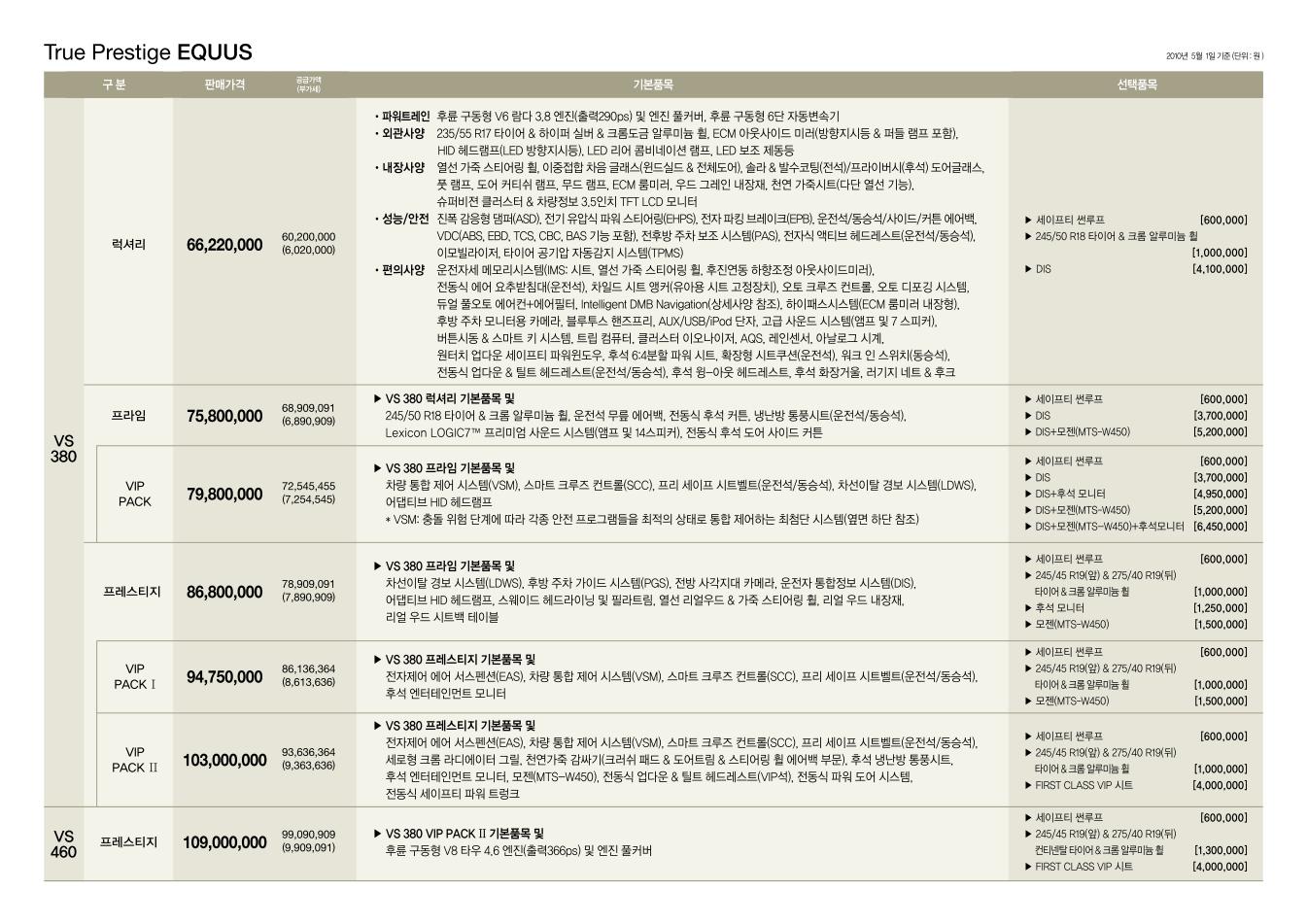 2011년 5월 뉴 에쿠스 신차가격표 (GDi 엔진 / 8단 미션 탑재)