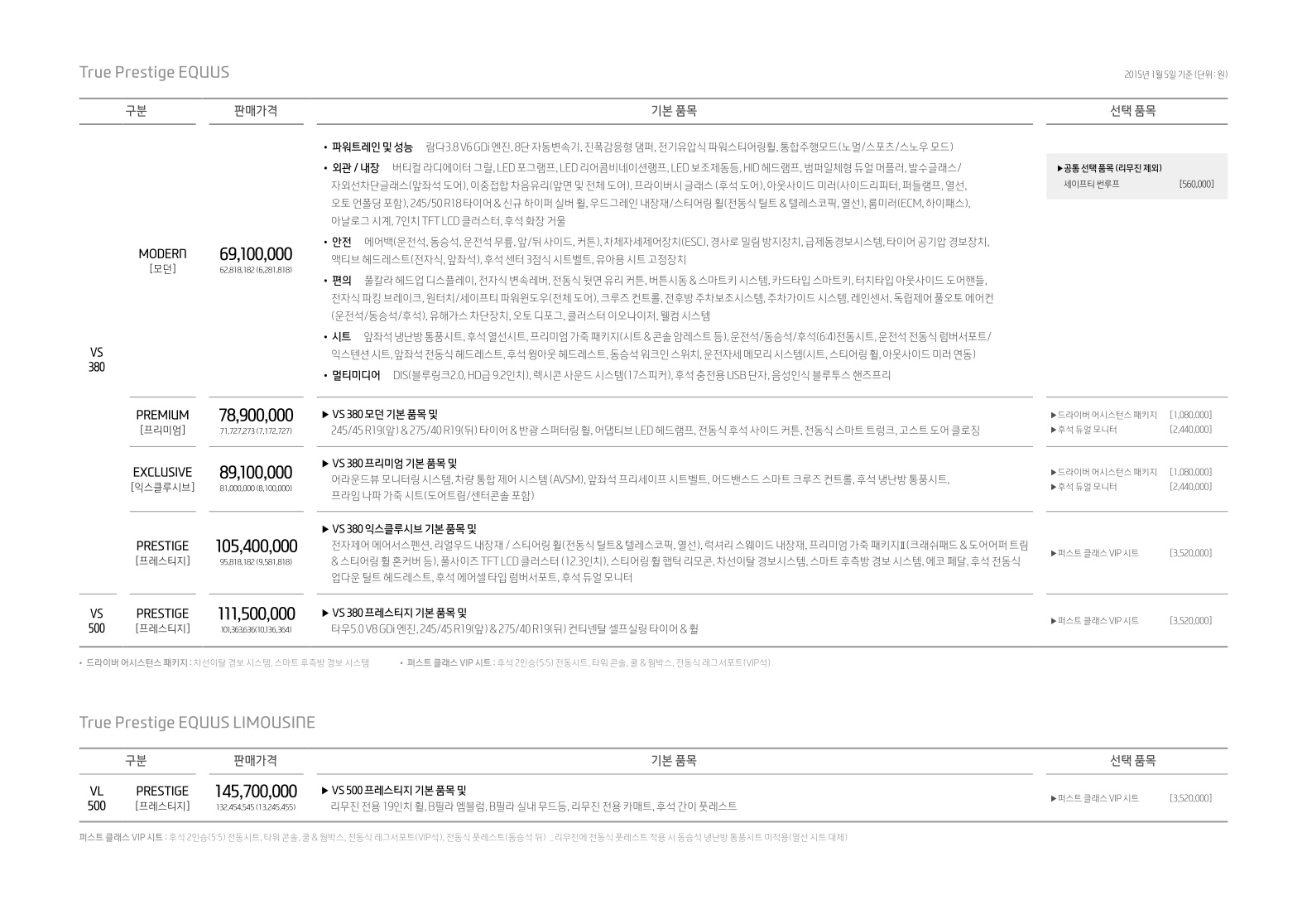 2015년 1월 에쿠스 신차가격표