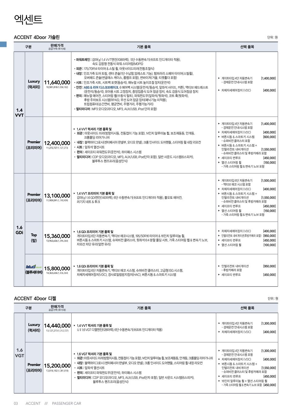 2013년 10월 신형 엑센트(RB) & 위트 신차가격표