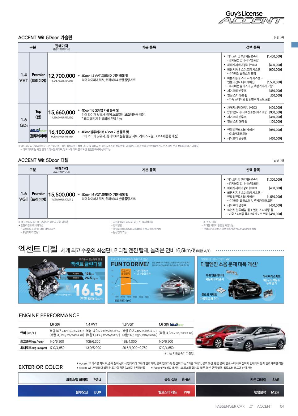 2012년 1월 신형 엑센트(RB) & 위트 신차가격표