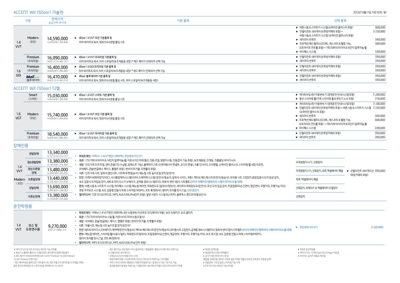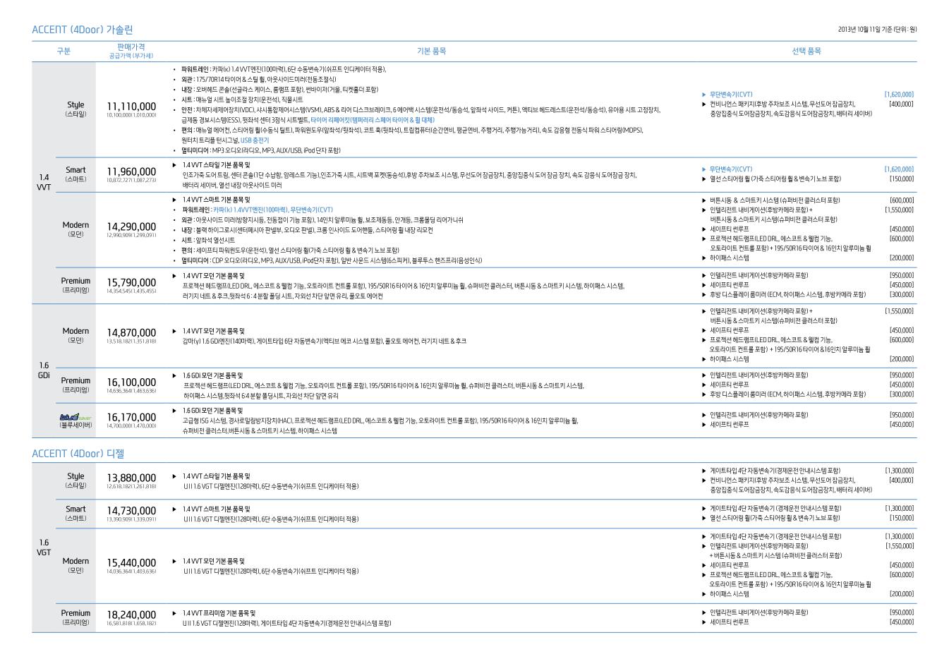 2013년 10월 신형 엑센트(RB) & 위트 신차가격표