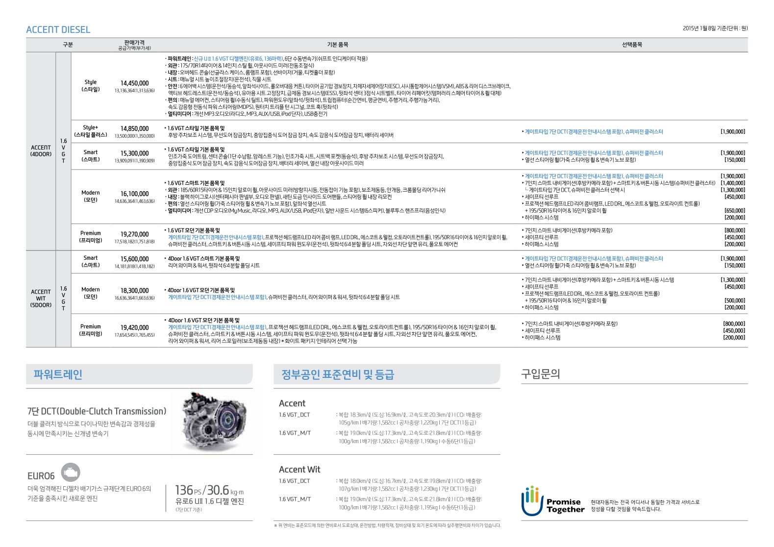 2015년 1월 신형 엑센트(RB) & 위트 디젤DCT 신차가격표