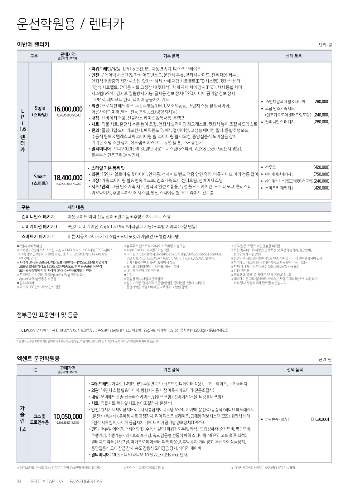 ※ 본 가격표의 모든 저작권은 해당 차량 제조사에 있습니다.