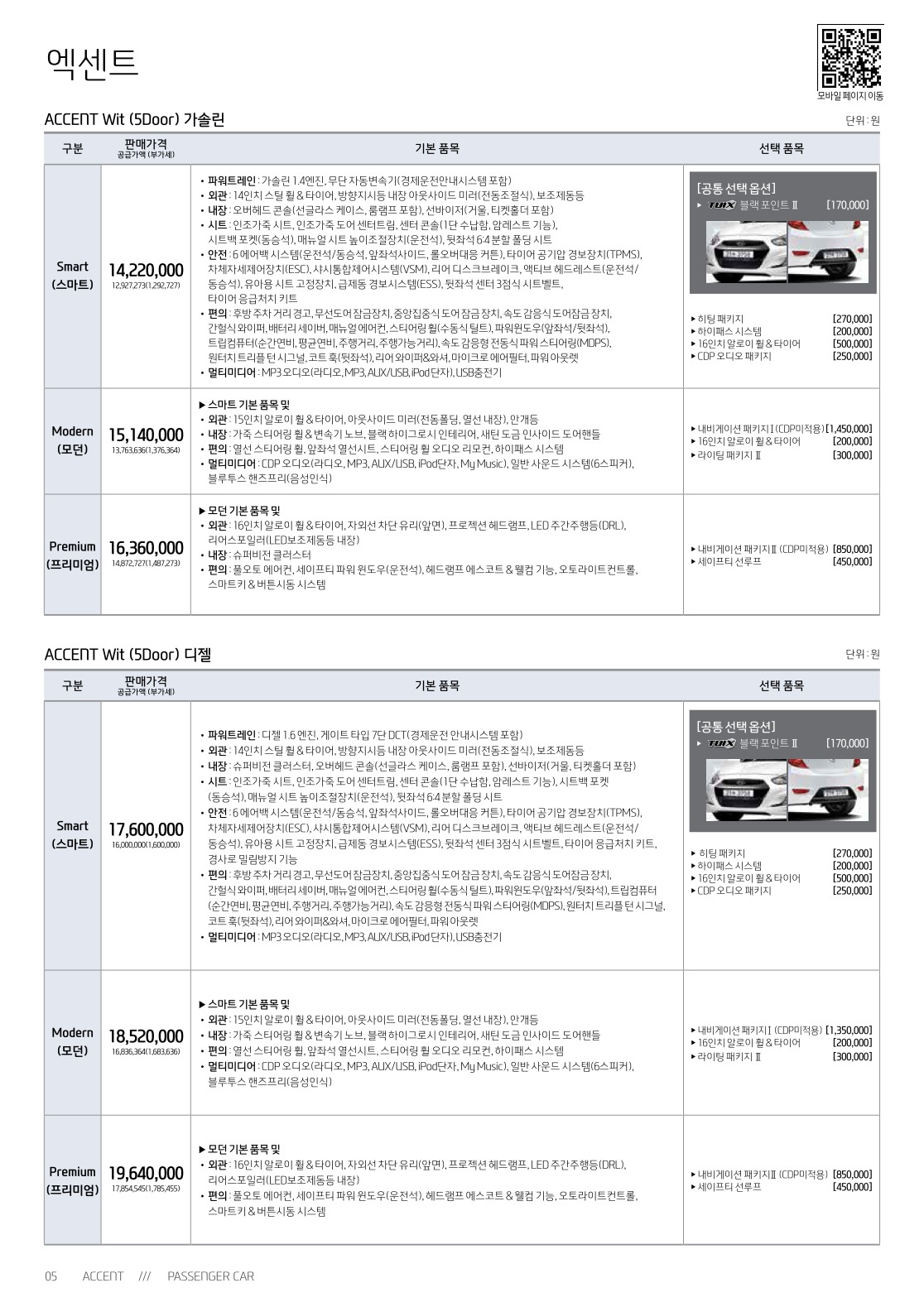 2018년 5월 엑센트 & 엑센트위트 신차가격표