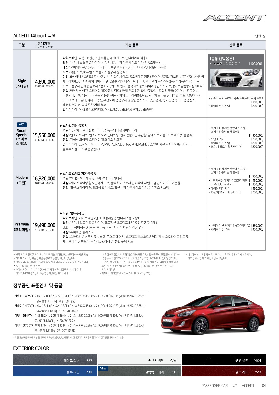 2017년 5월 신형 엑센트(RB) & 위트 신차가격표
