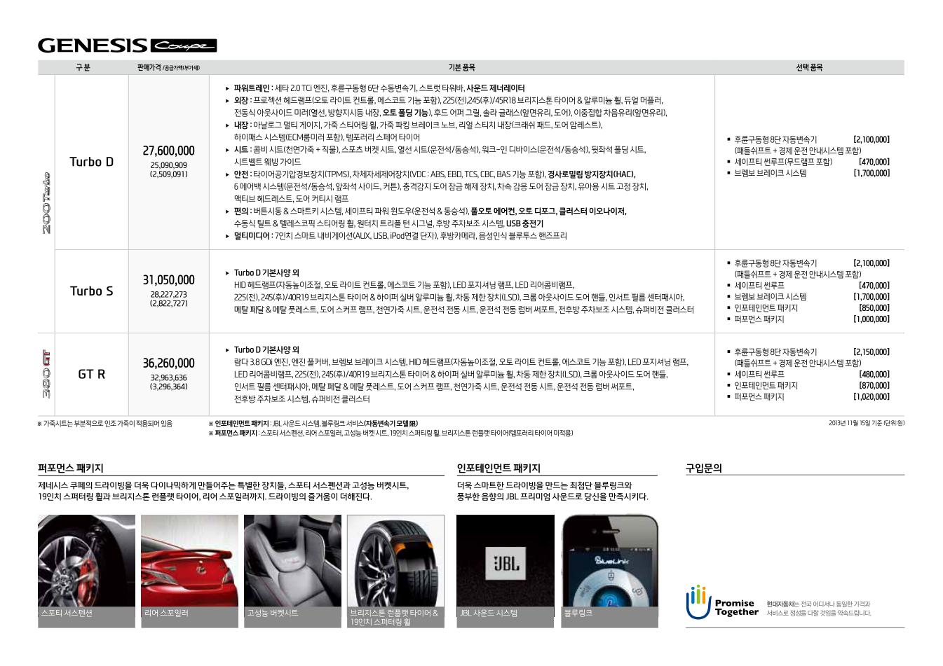 2012년 3월 제네시스쿠페 신차가격표 (3.8모델 FTA 개별소비세 인하)