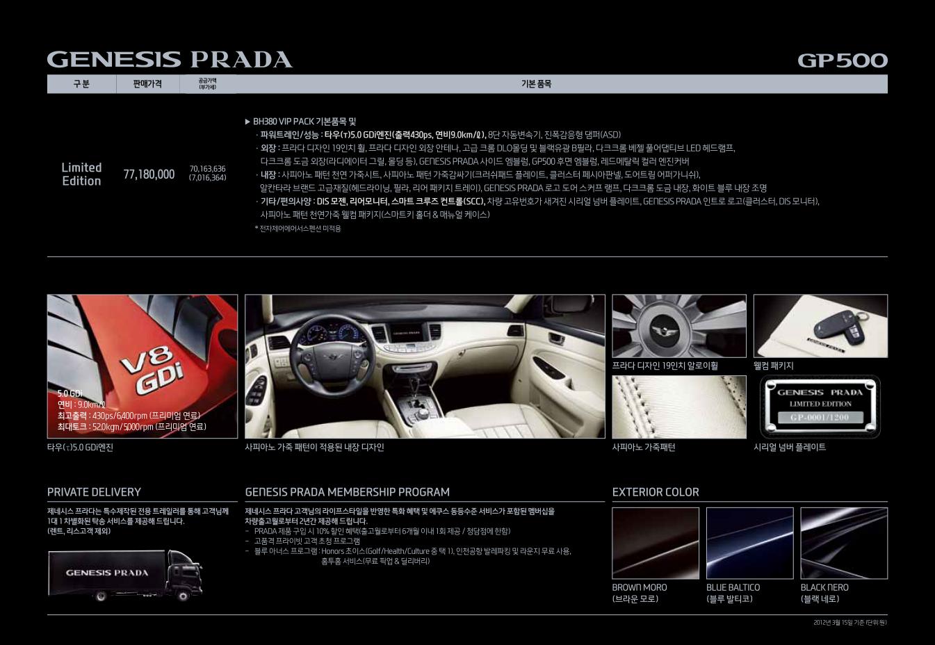 2012년 3월 제네시스 프라다 신차가격표 (FTA 개별소비세 인하 반영)