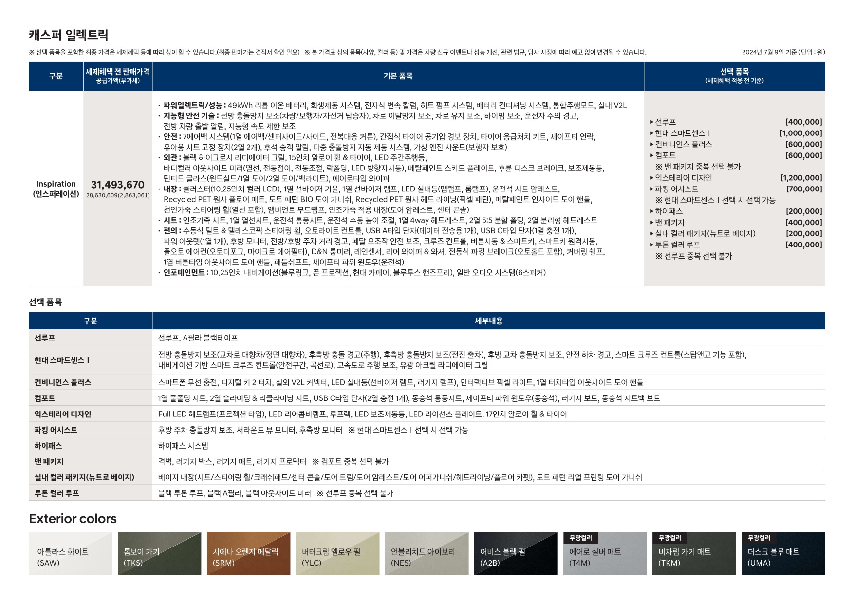 2024년 7월 캐스퍼 일렉트릭 신차가격표