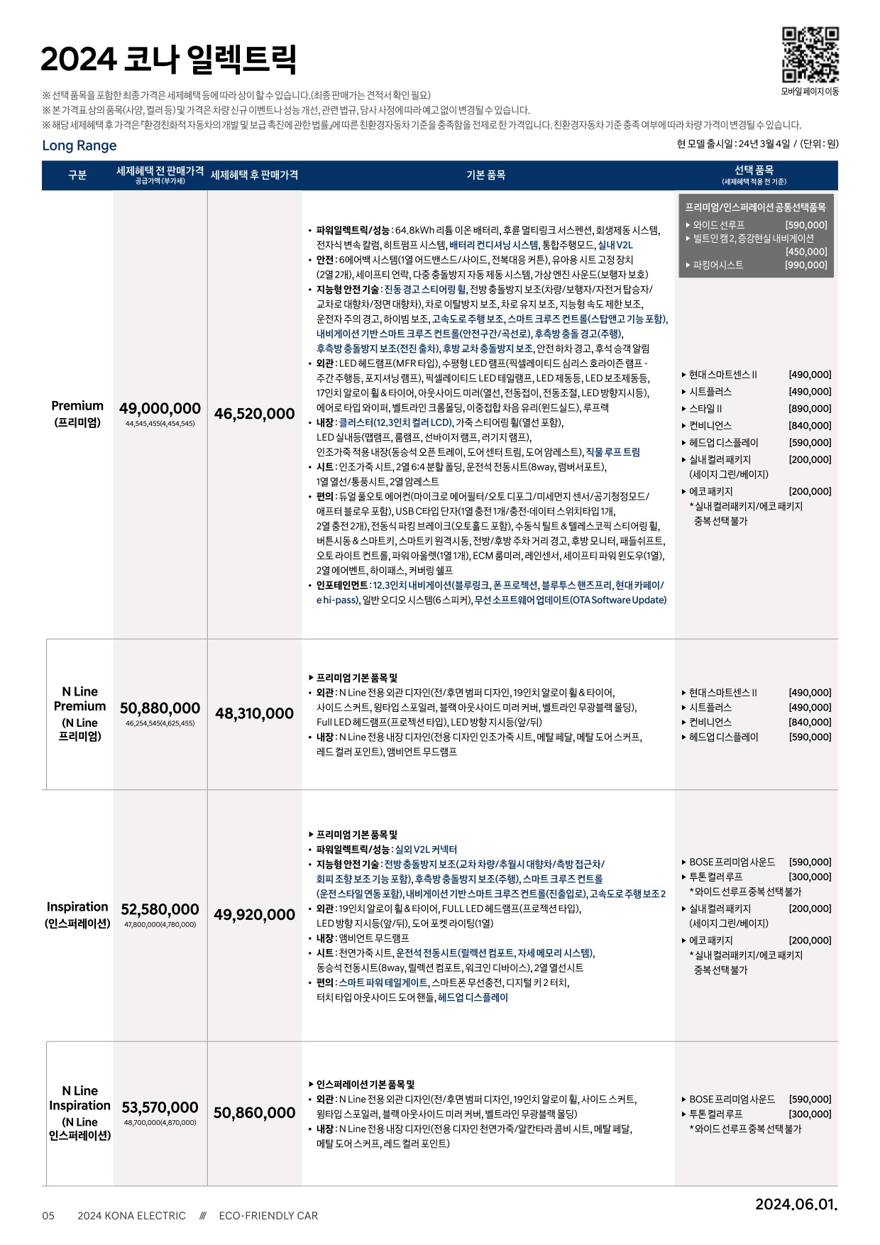 2024년 6월 코나 & 코나 하이브리드 신차가격표