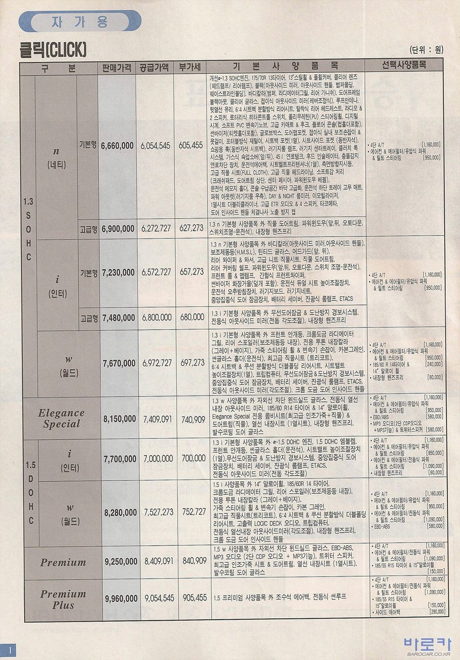 2004년 8월 클릭 신차가격표