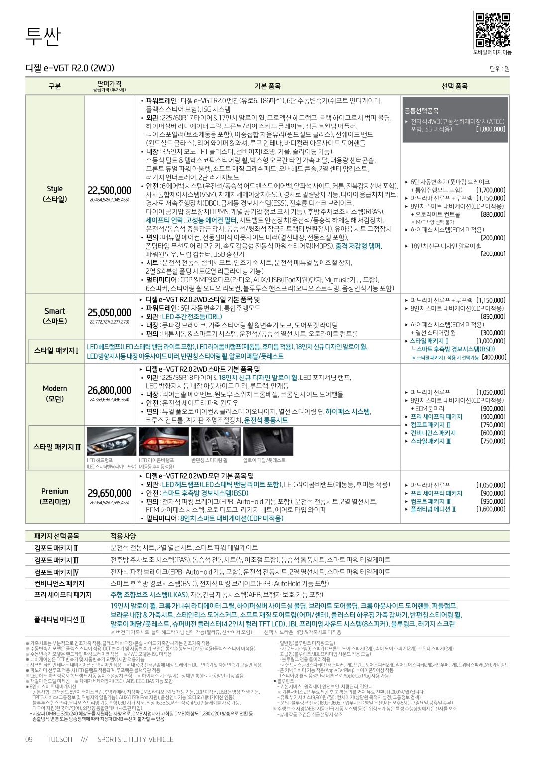 2018년 2월 투싼 신차가격표