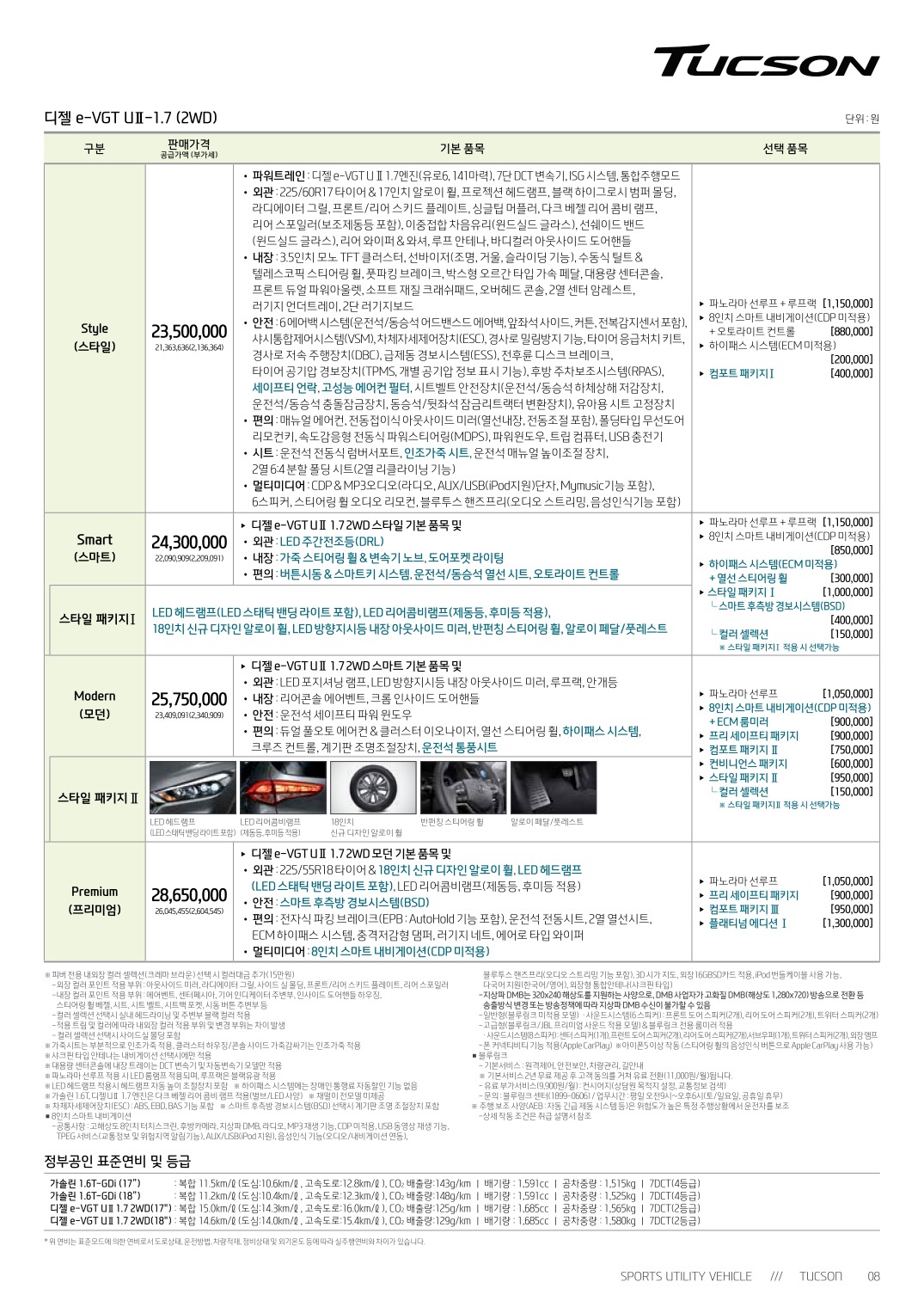 2018년 8월 투싼 신차가격표