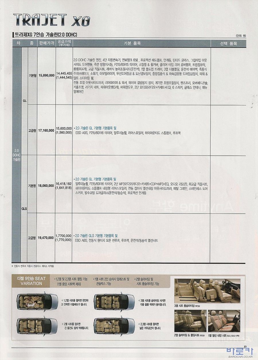 2005년 4월 트라제XG 신차가격표