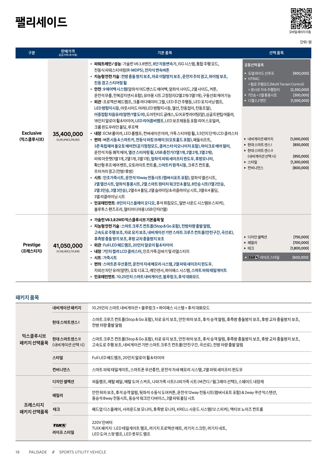 2020년 5월 팰리세이드 신차가격표 (2020년식 펠리세이드 출시)