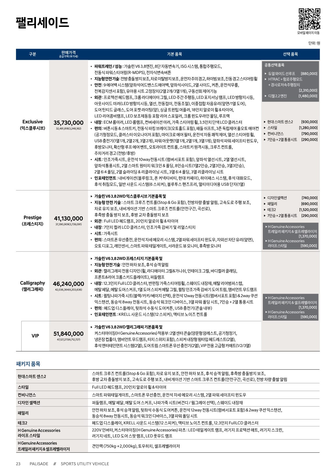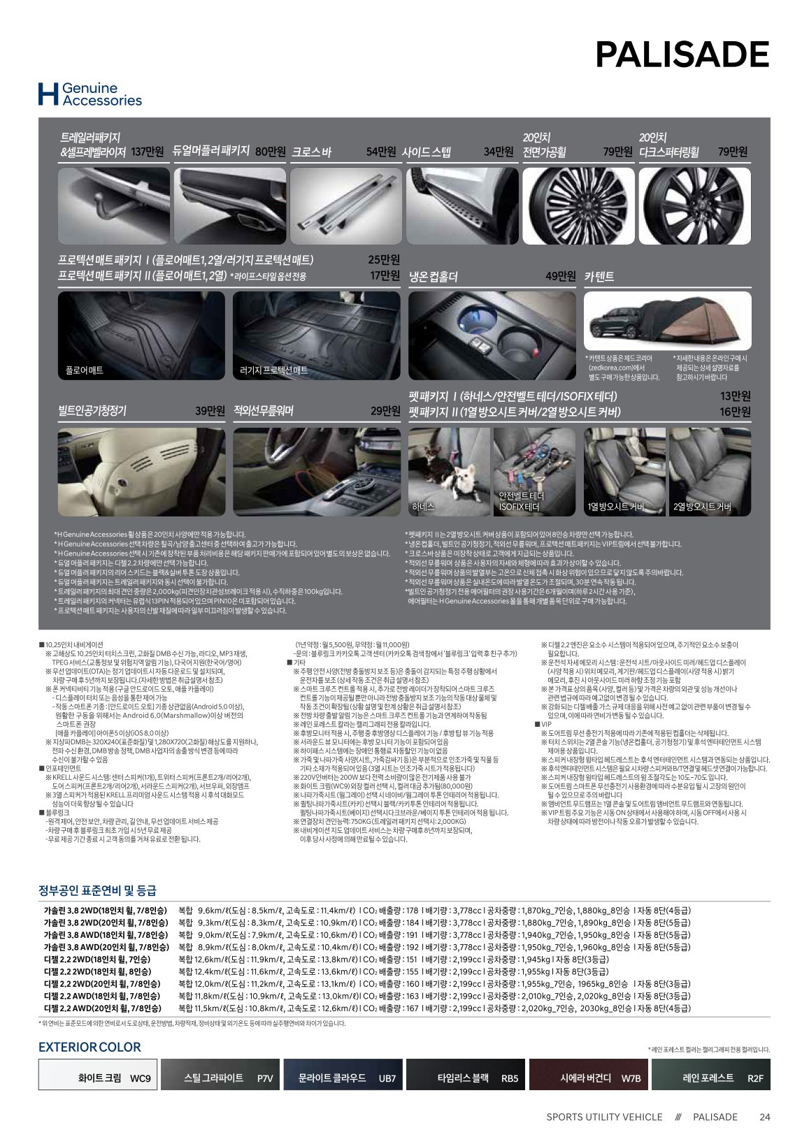 2020년 10월 팰리세이드 신차가격표