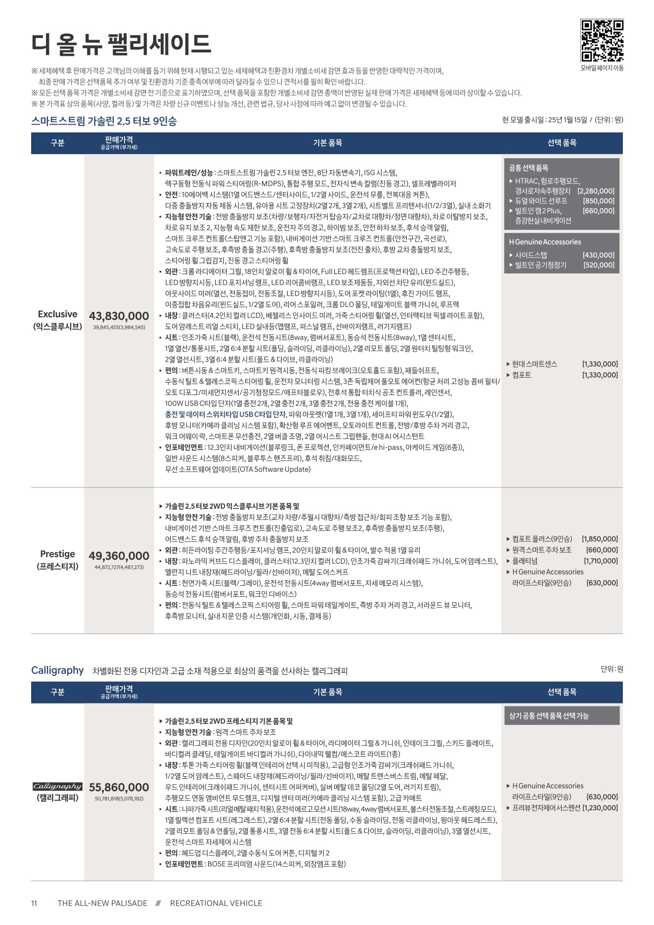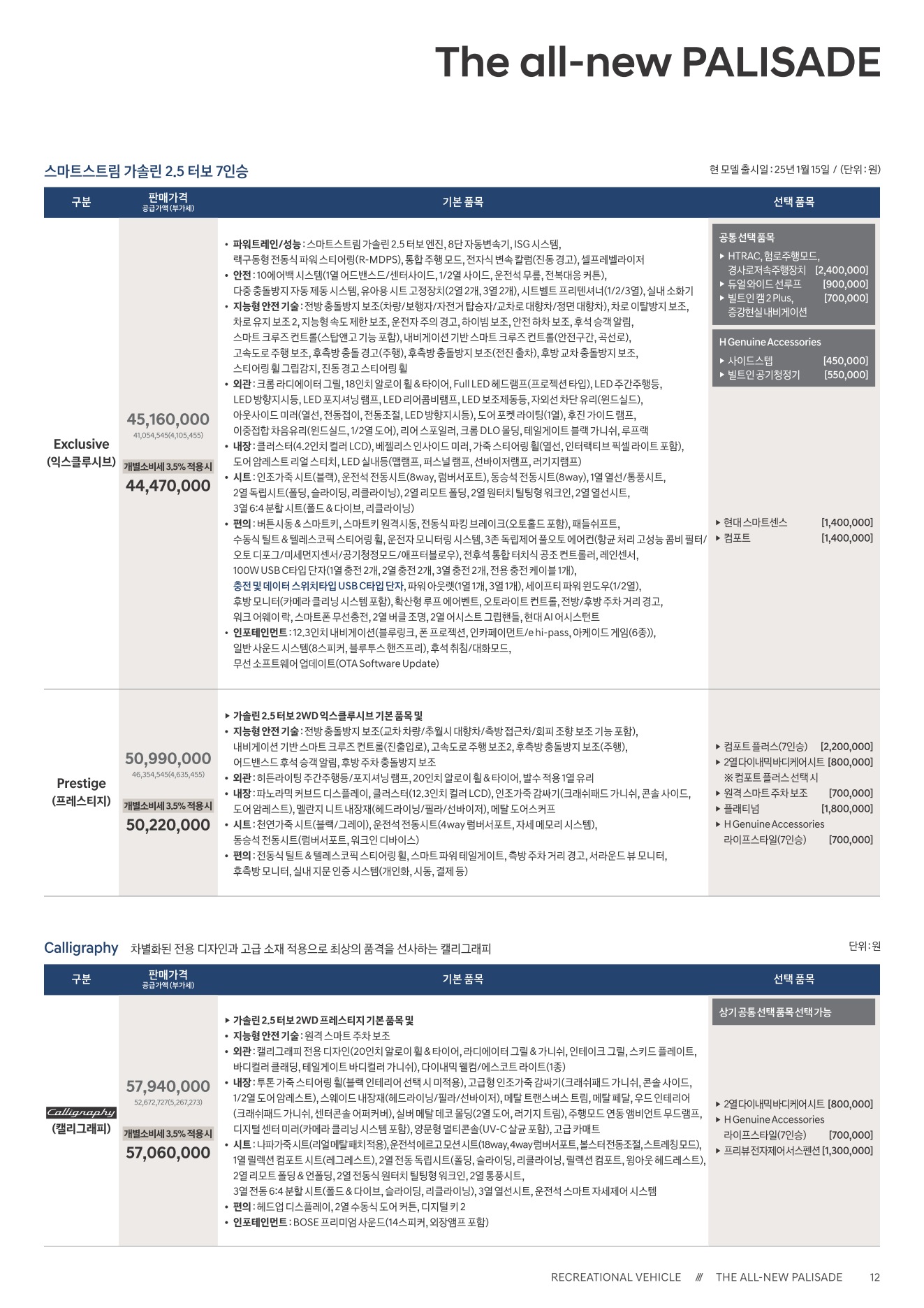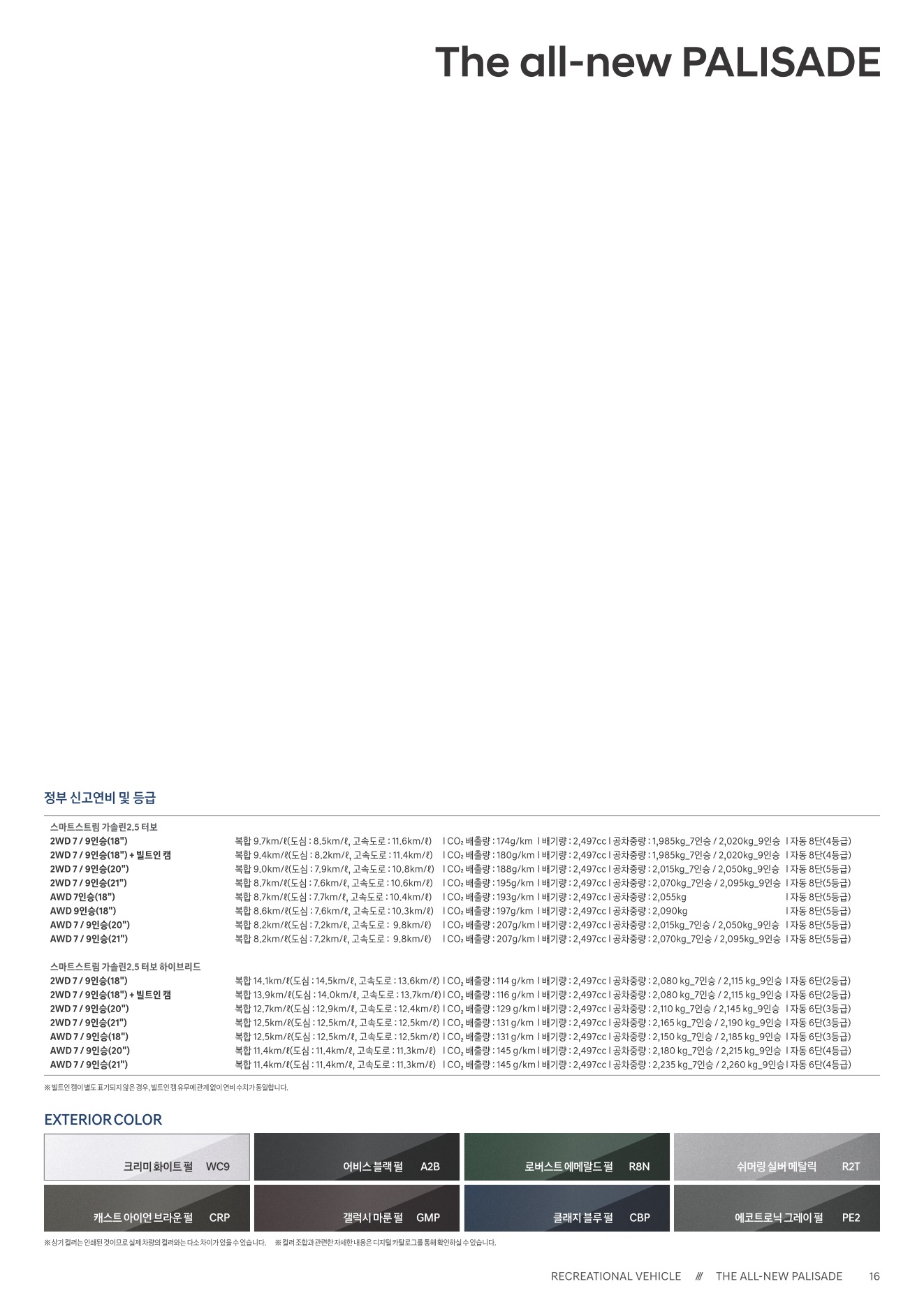 2025년 4월 팰리세이드 신차가격표 (2.5터보 하이브리드 모델 연비 발표)