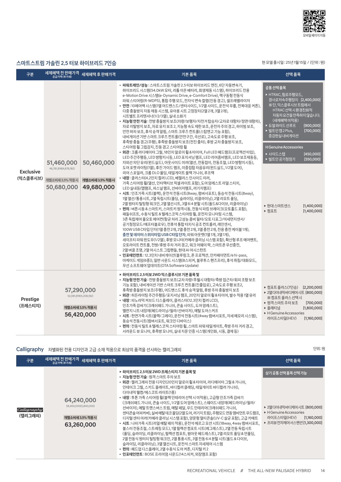 2025년 12월 펠리세이드 하이브리드 신차가격표