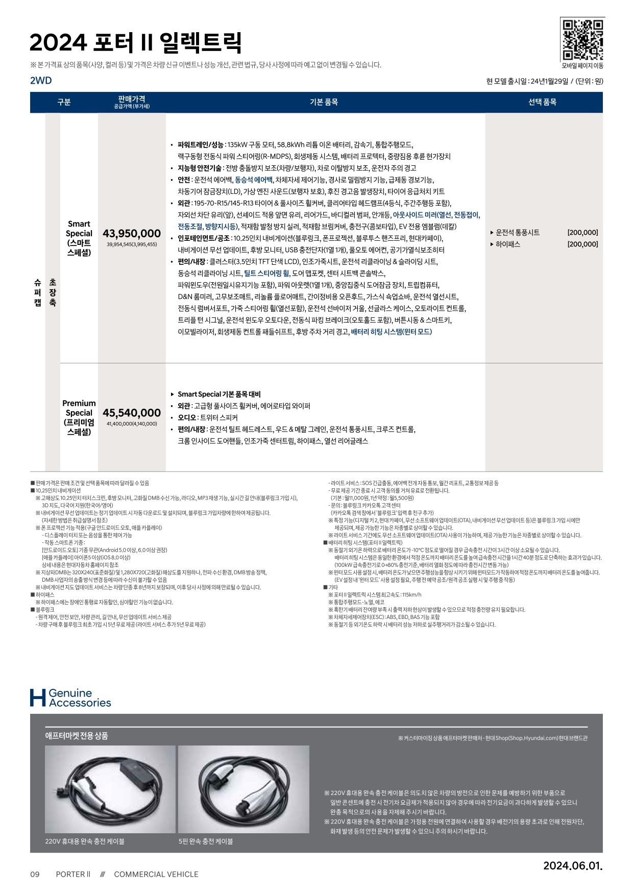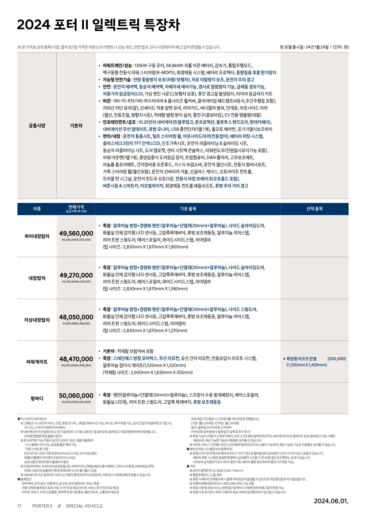 2024년 6월 포터2 일렉트릭 & 일렉트릭 특장차 신차가격표