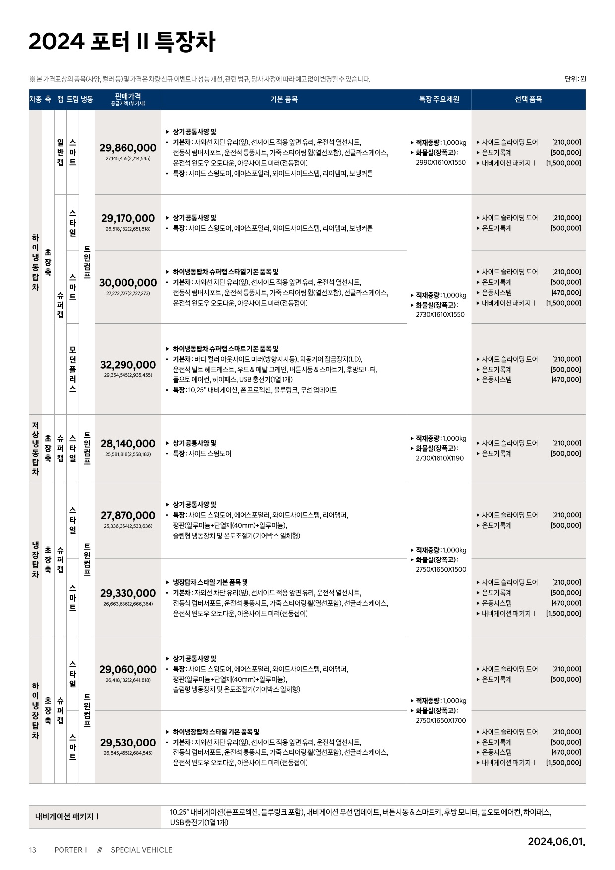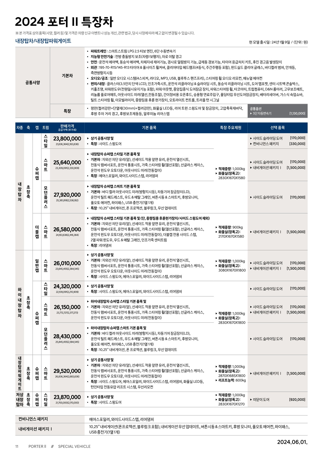 2024년 6월 포터 신차가격표