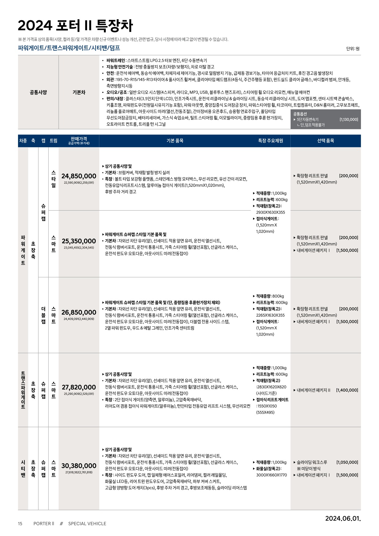 2024년 6월 포터 특장차 신차가격표