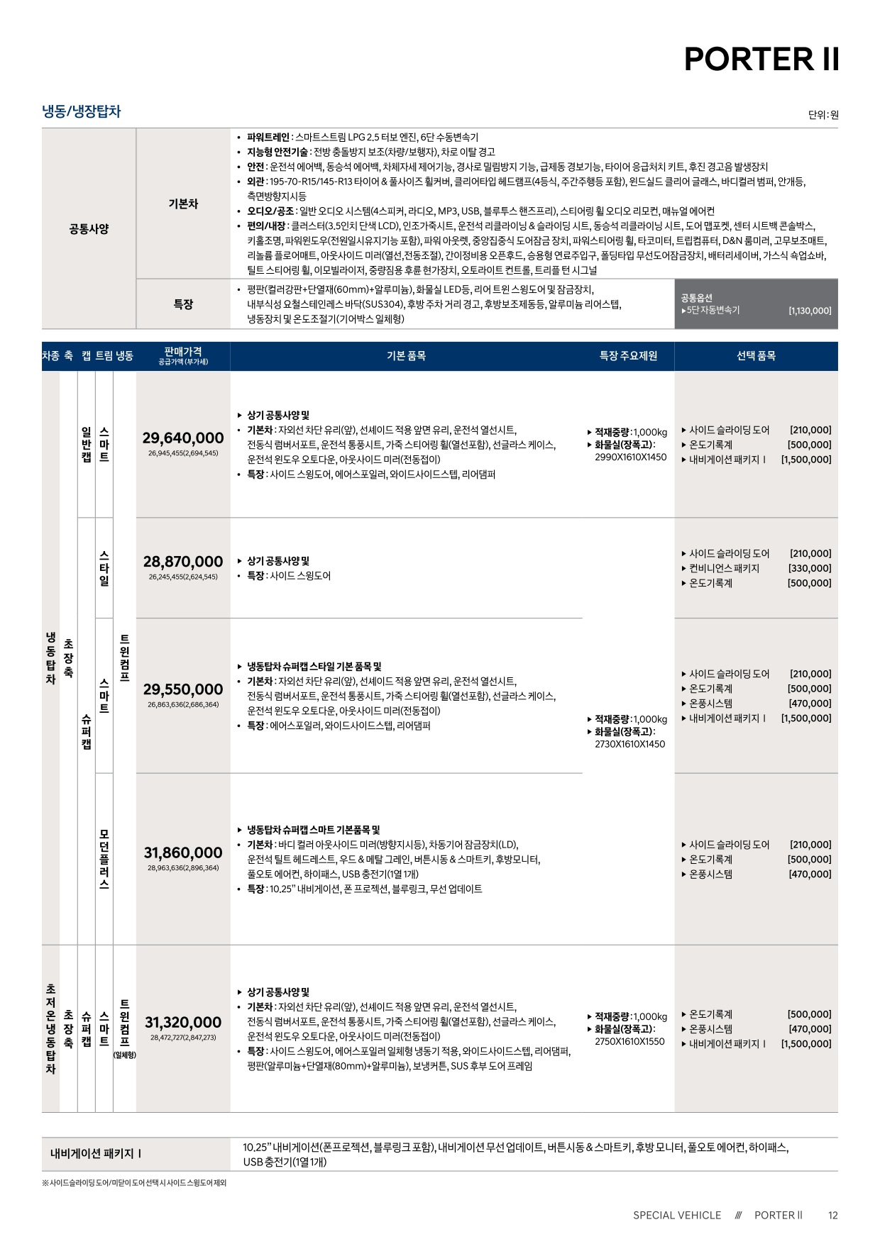 2024년 12월 포터 일렉트릭 & 포터 일렉트릭 특장차 신차가격표